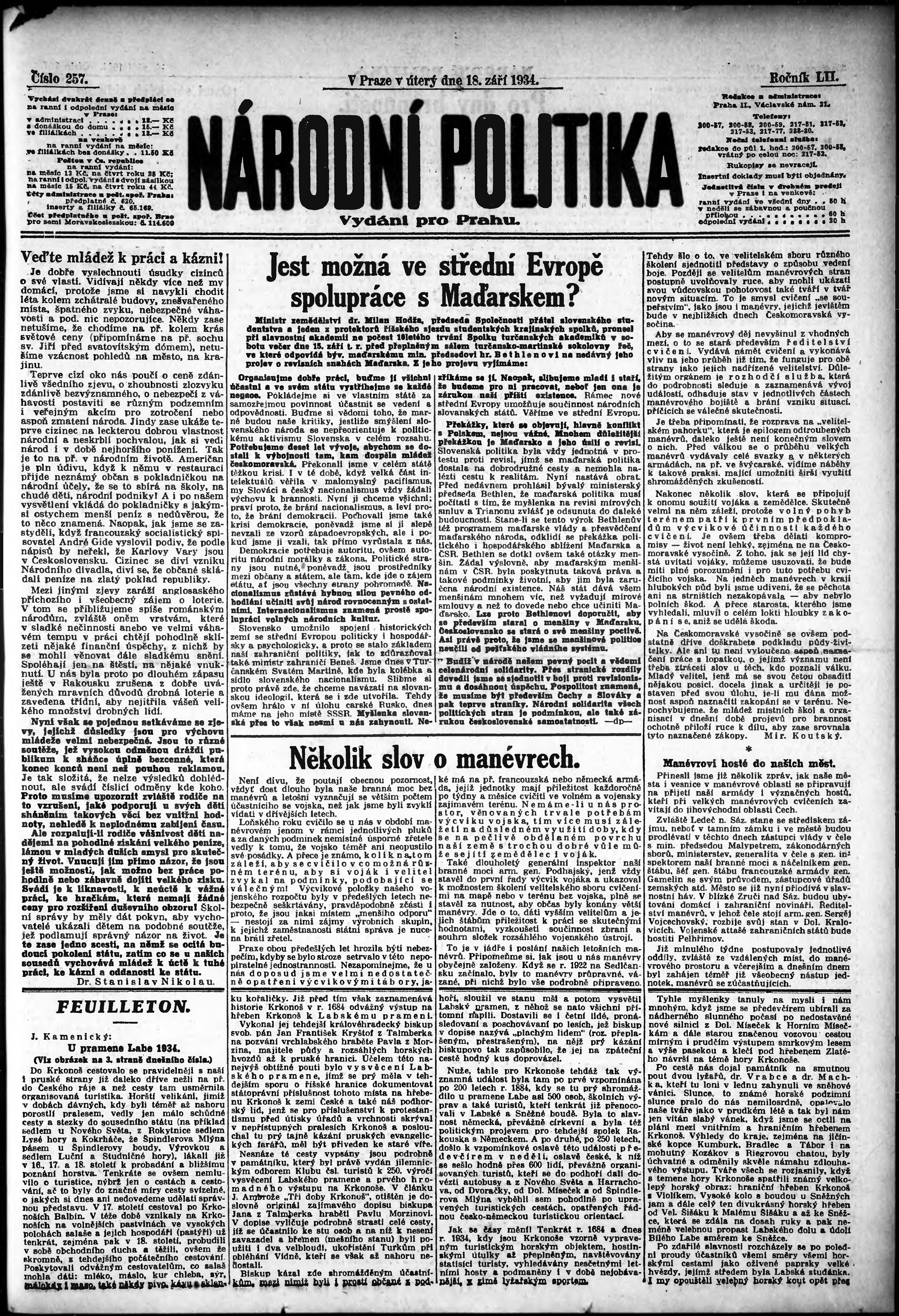 ranní vydání; vydání pro Prahu;