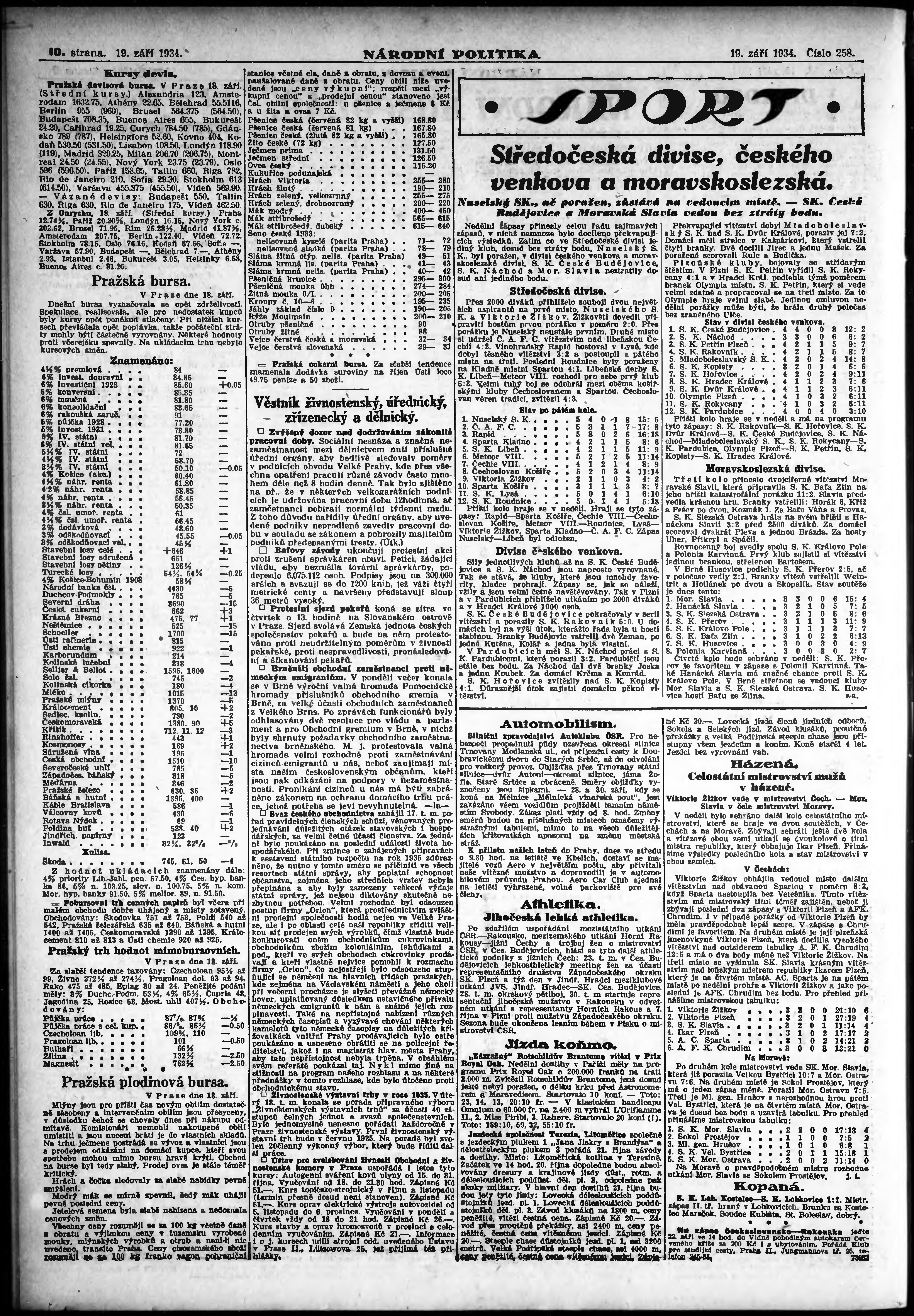 ranní vydání; vydání pro Prahu;