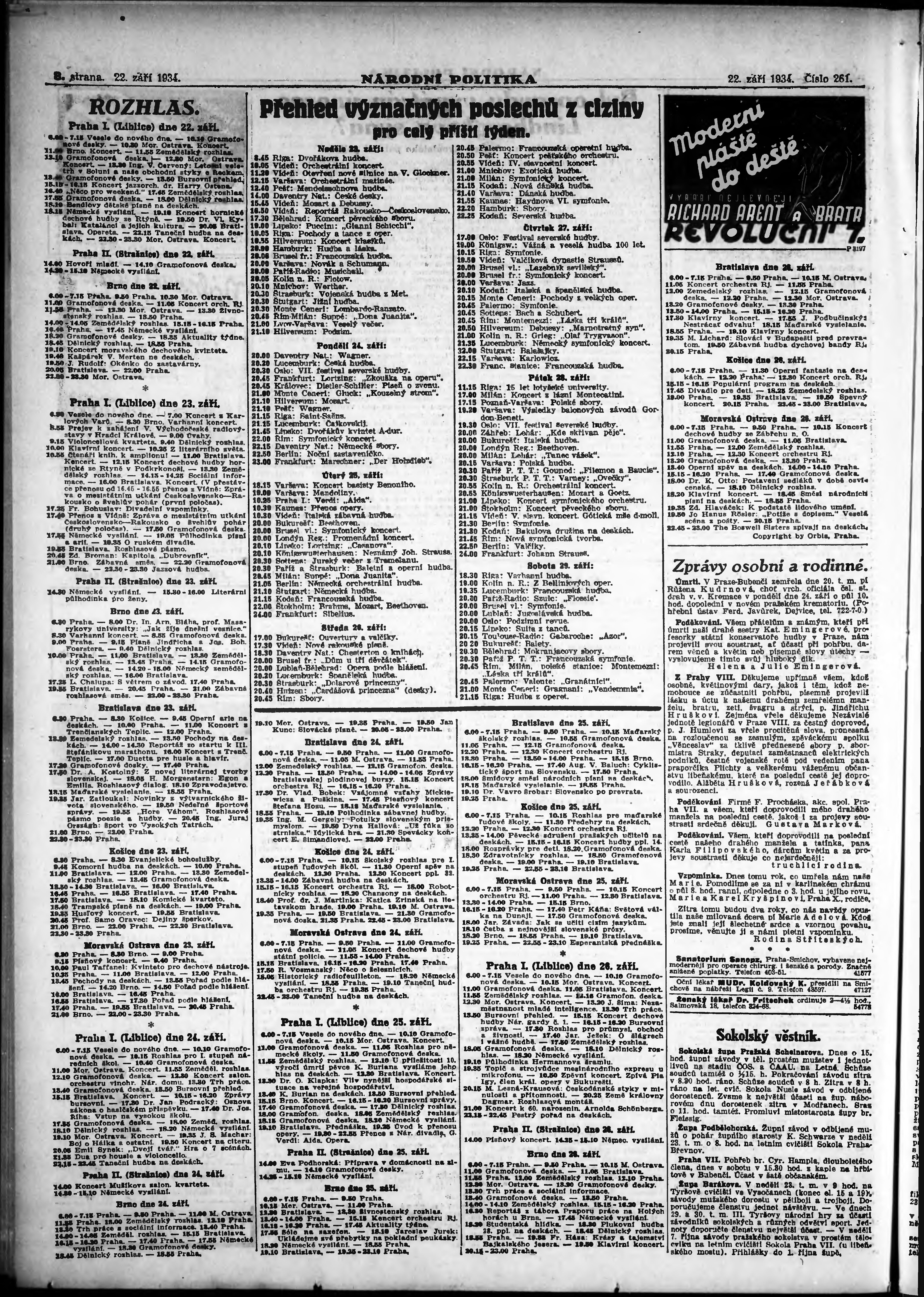 * Datum vydání výtisku: 22.9.1934 Číslo výtisku: 261 Poznámky k výtisku: ranní vydání; vydání pro Prahu;