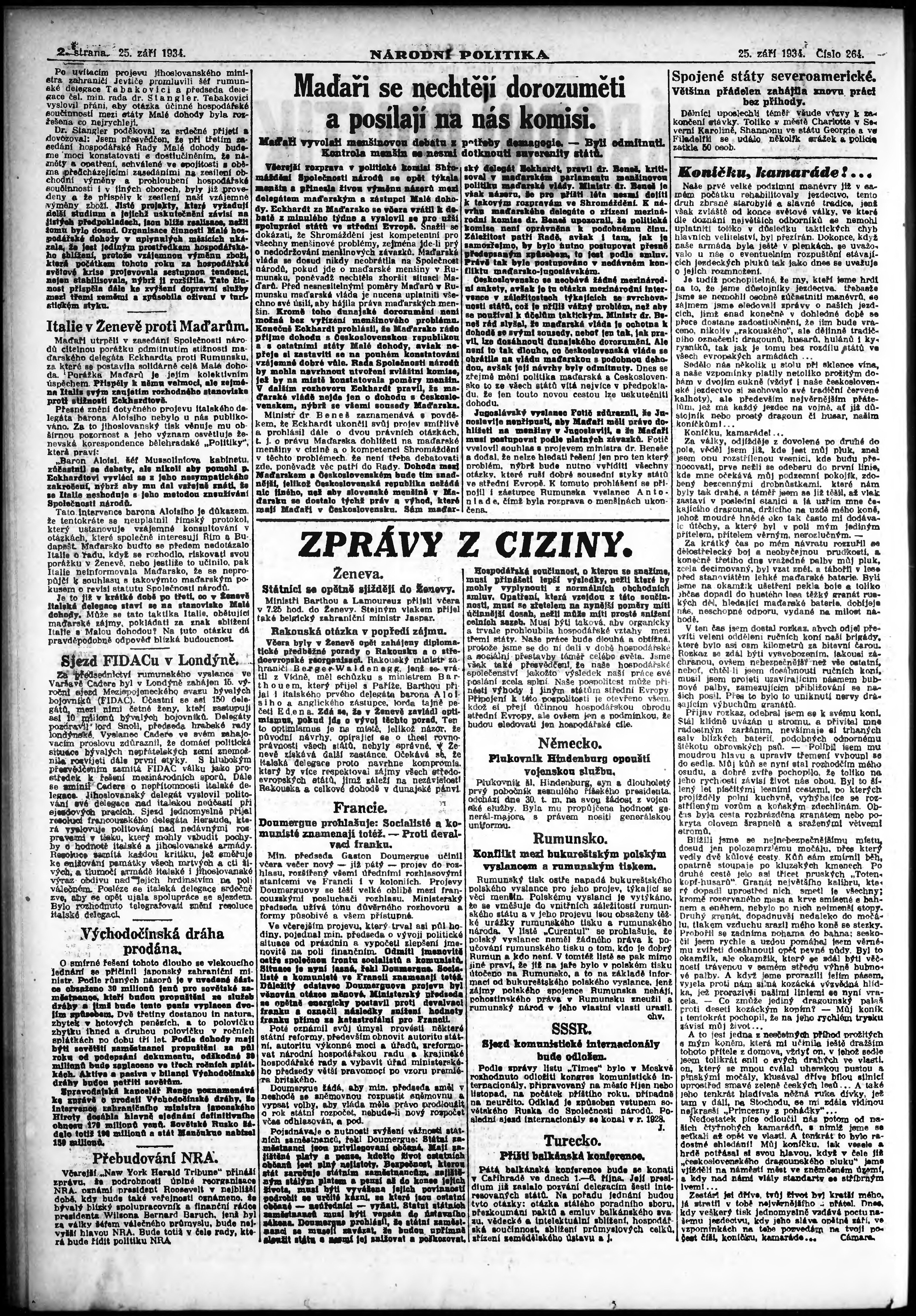* Datum vydání výtisku: 25.9.1934 Číslo výtisku: 264 Poznámky k výtisku: ranní vydání; vydání pro Prahu;