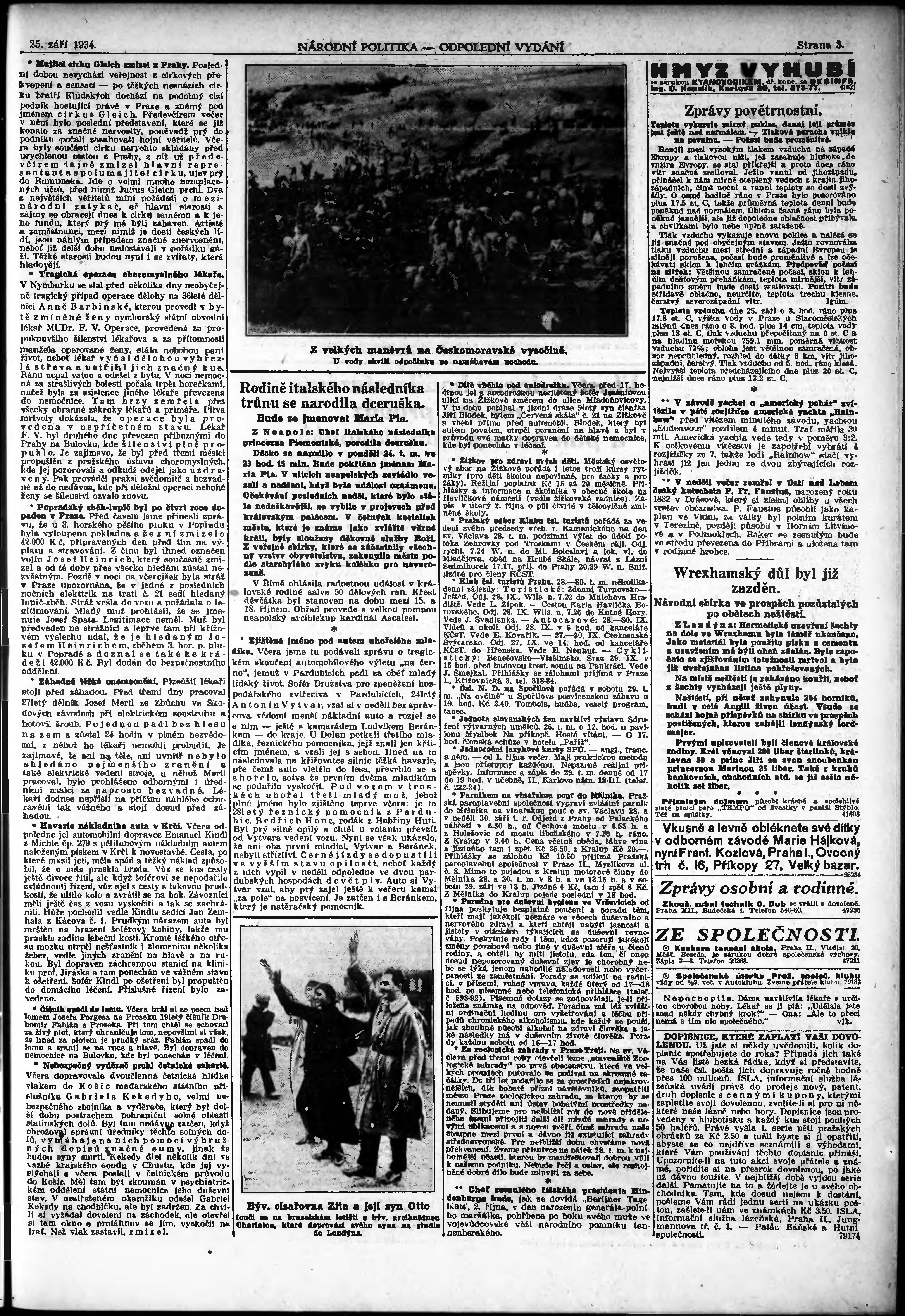* Datum vydání výtisku: 25.9.1934 Číslo výtisku: 264 Poznámky k výtisku: odpolední vydání;
