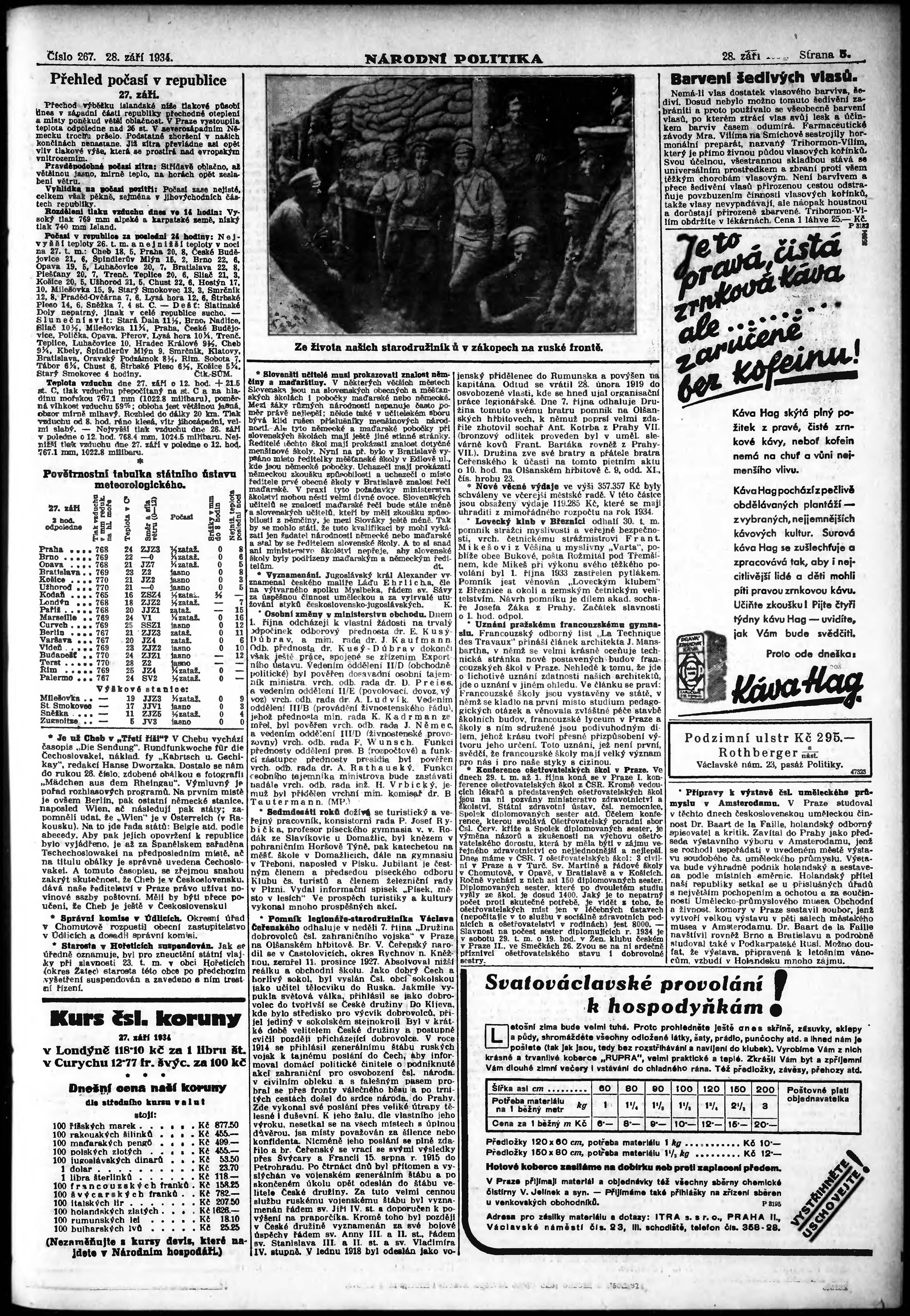 * Datum vydání výtisku: 28.9.1934 Číslo výtisku: 267 Poznámky k výtisku: ranní vydání;