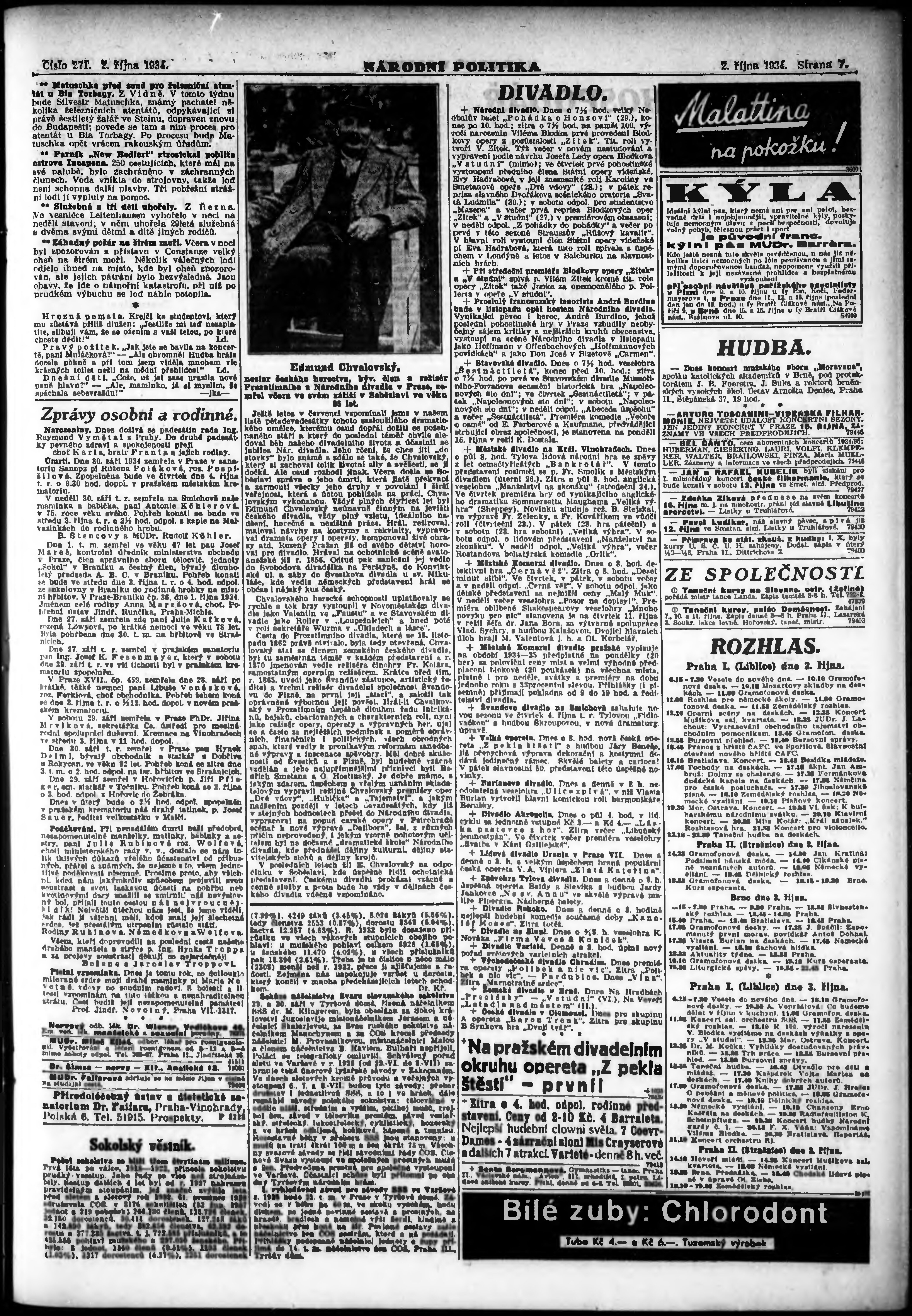 * Datum vydání výtisku: 2.10.1934 Číslo výtisku: 271 Poznámky k výtisku: ranní vydání; vydání pro Prahu;
