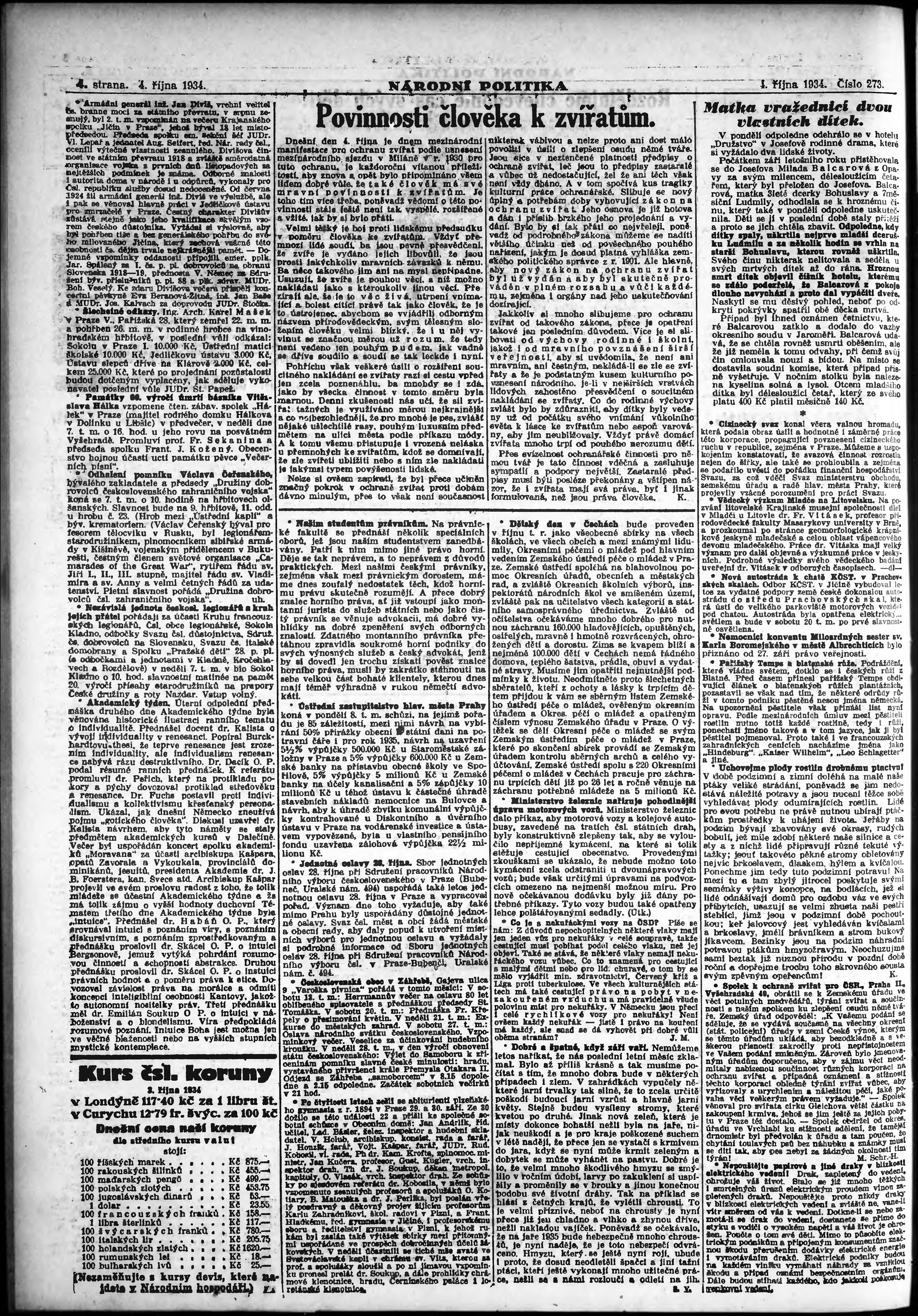 * Datum vydání výtisku: 4.10.1934 Číslo výtisku: 273 Poznámky k výtisku: ranní vydání; vydání pro Prahu;