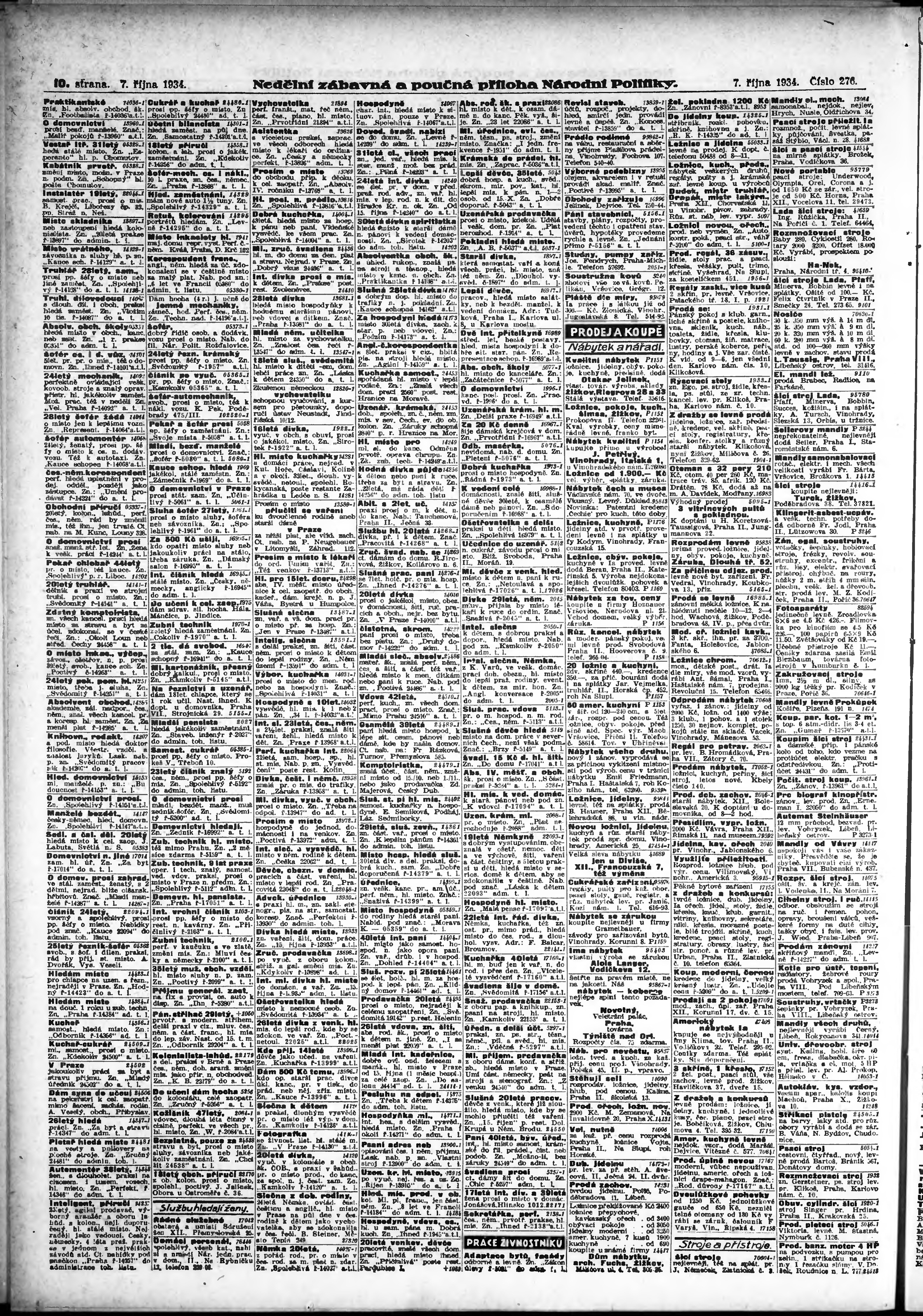 * Datum vydání výtisku: 7.10.1934 Číslo výtisku: 276 Typ výtisku: příloha