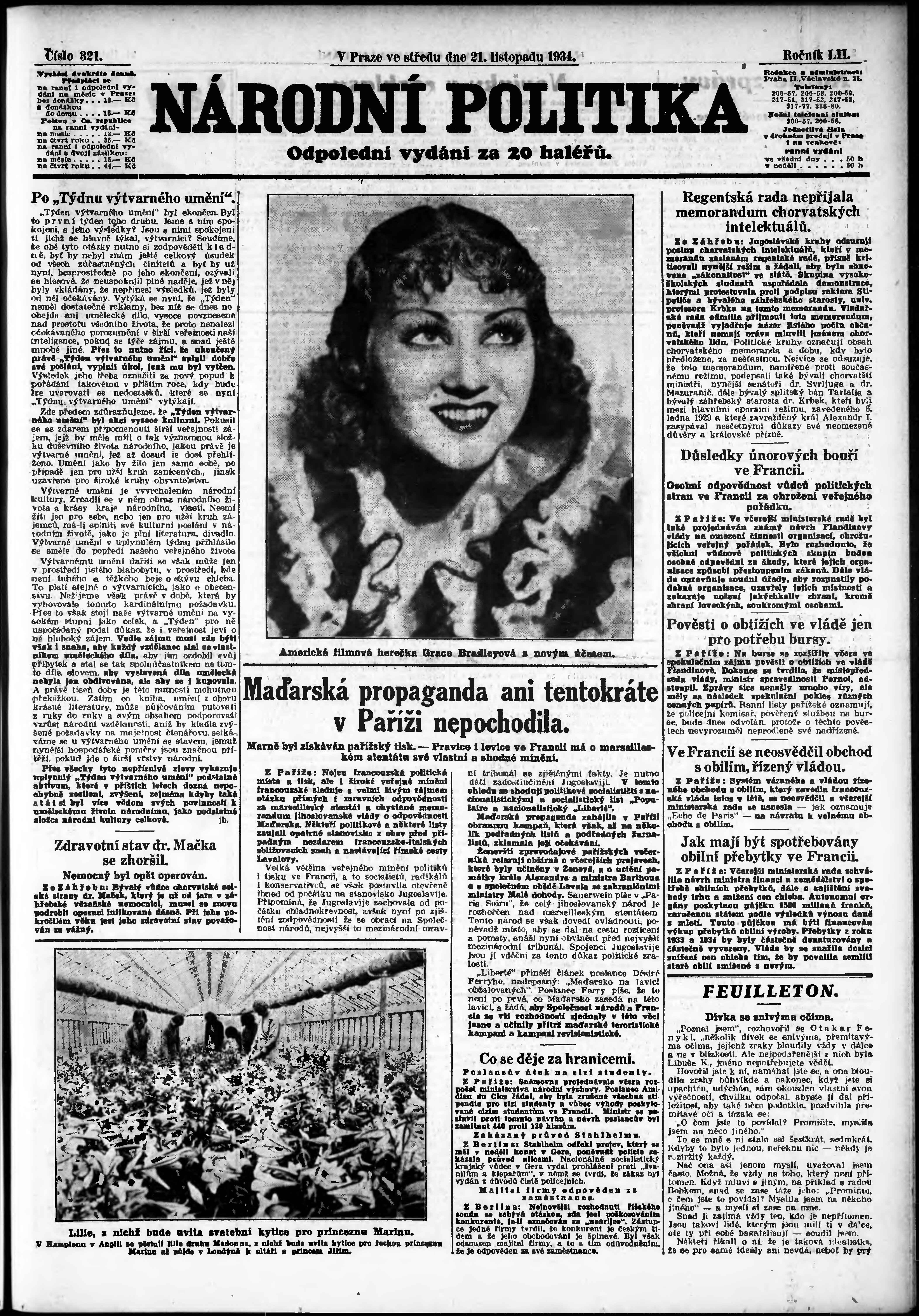 * Datum vydání výtisku: 21.11.1934 Číslo výtisku: 321 Poznámky k výtisku: odpolední vydání;