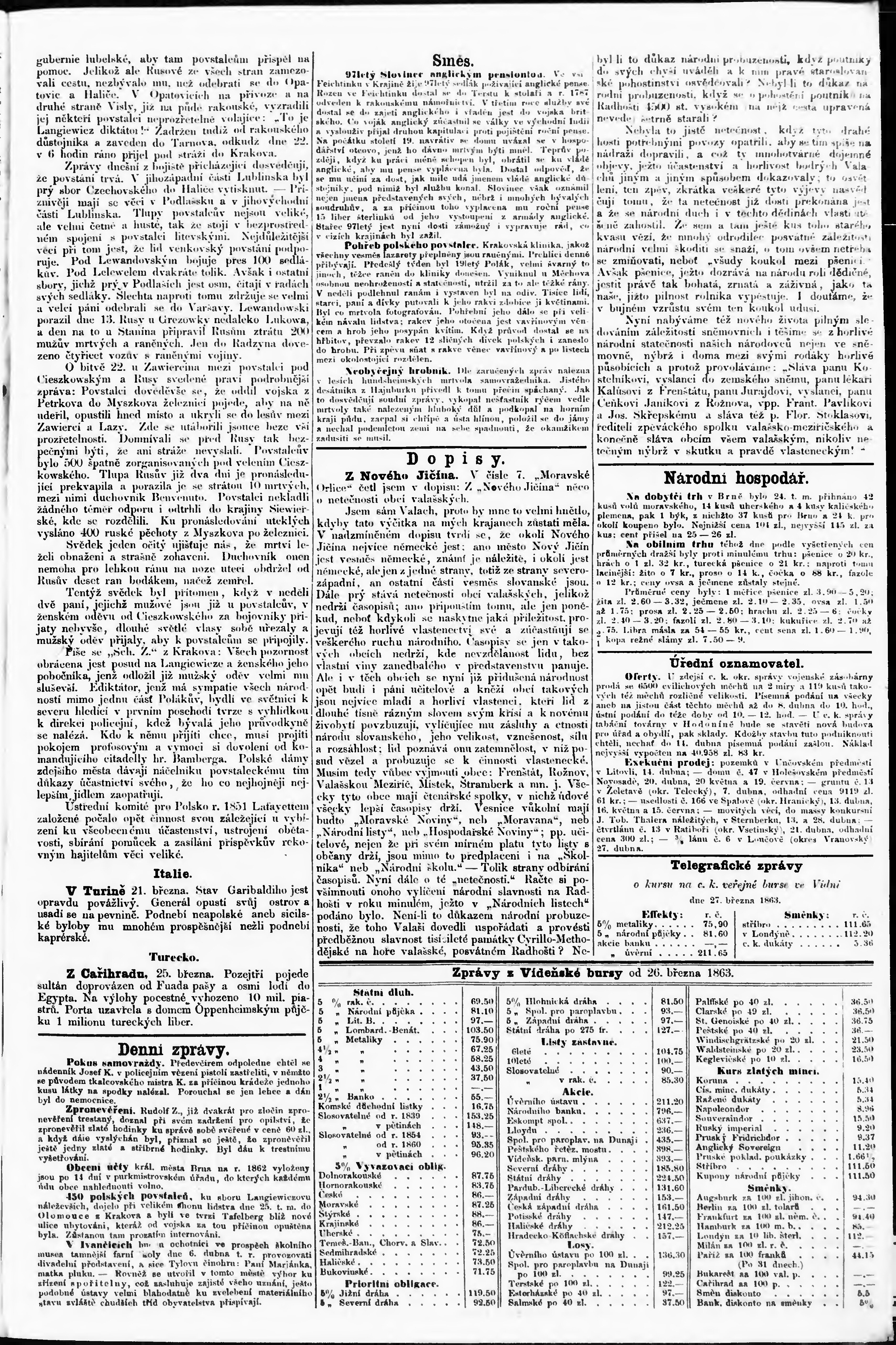 * Datum vydání výtisku: 28.3.1863 Číslo výtisku: 16