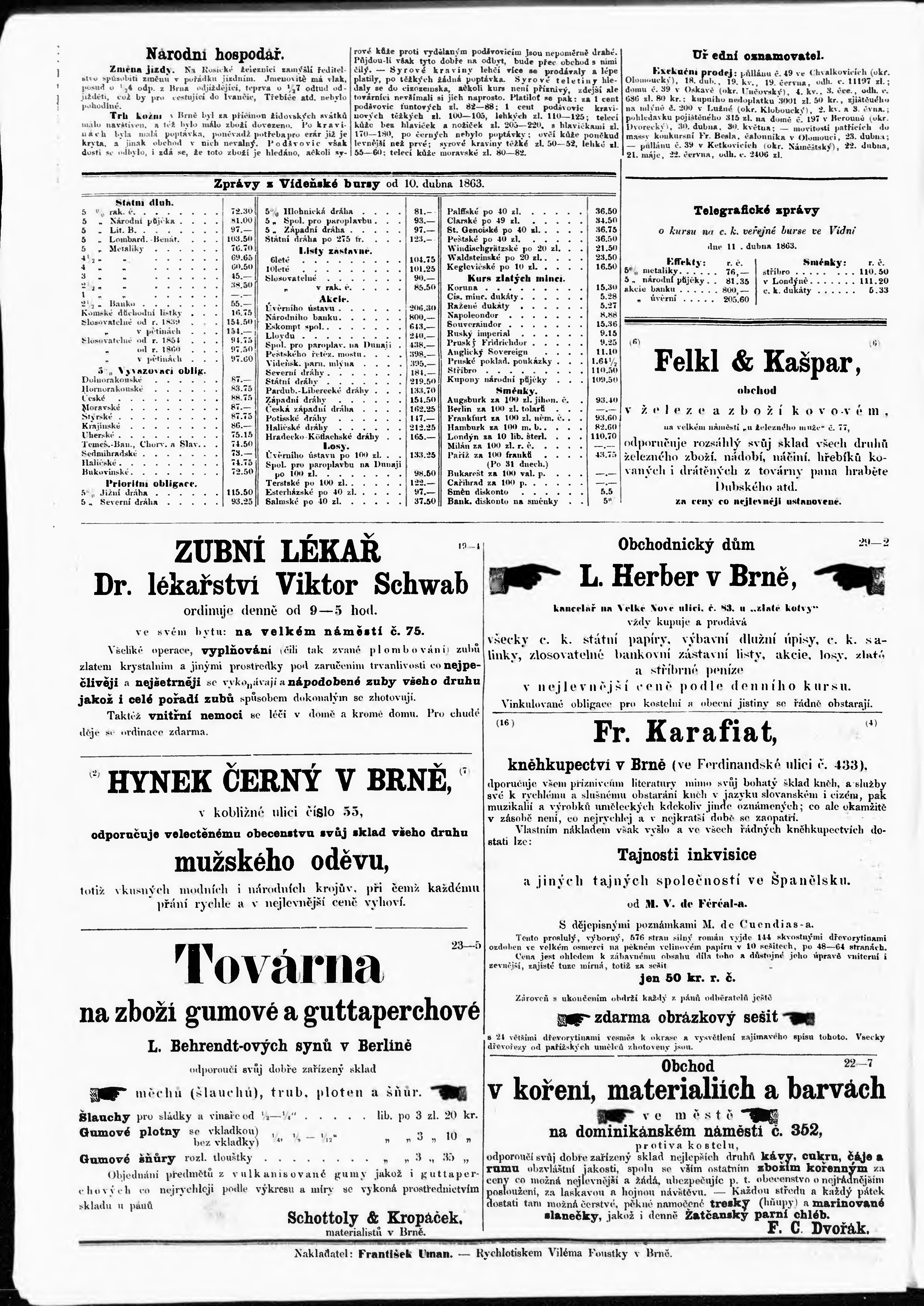* Datum vydání výtisku: 12.4.1863 Číslo výtisku: 28