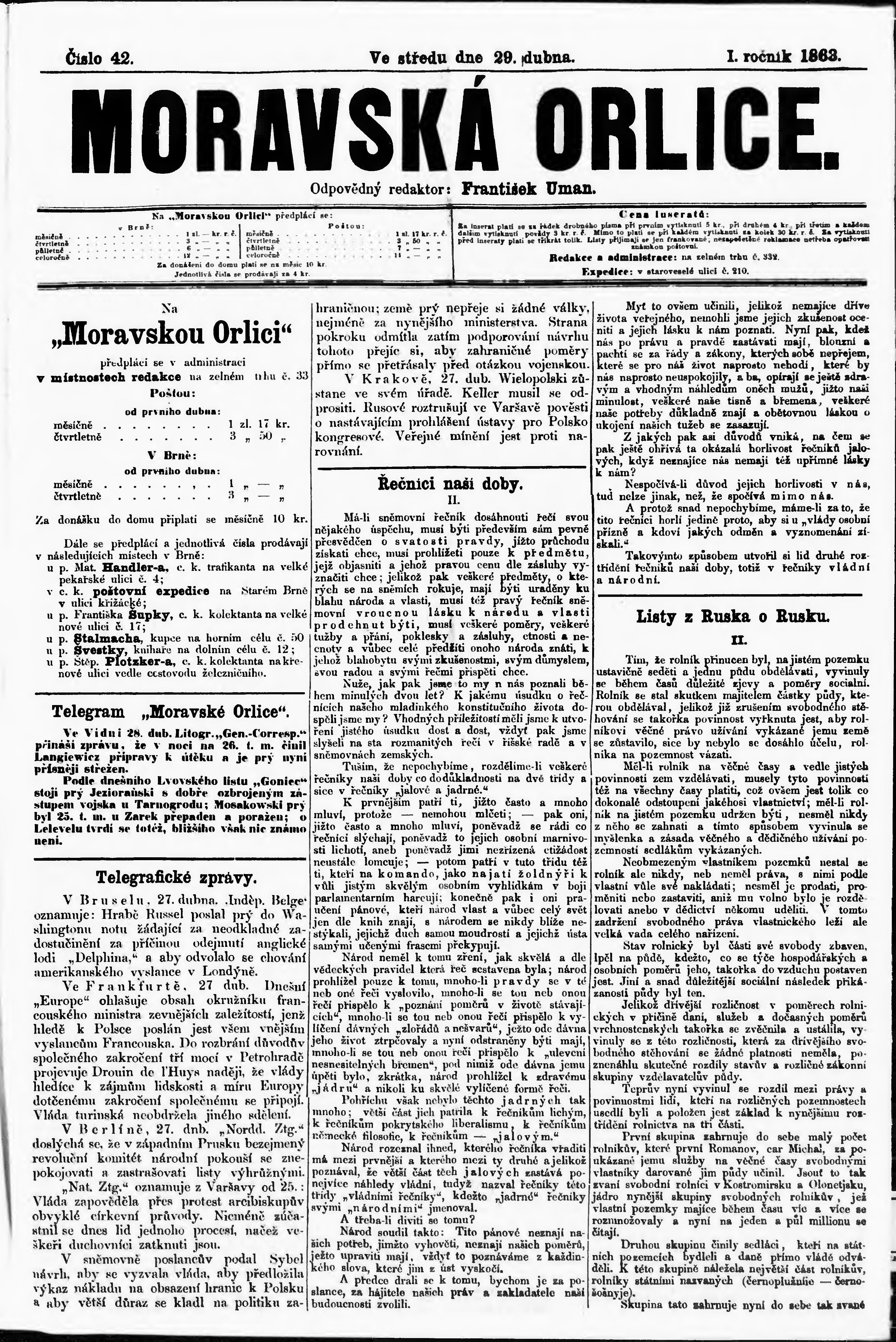 * Datum vydání výtisku: 29.4.1863 Číslo výtisku: 42
