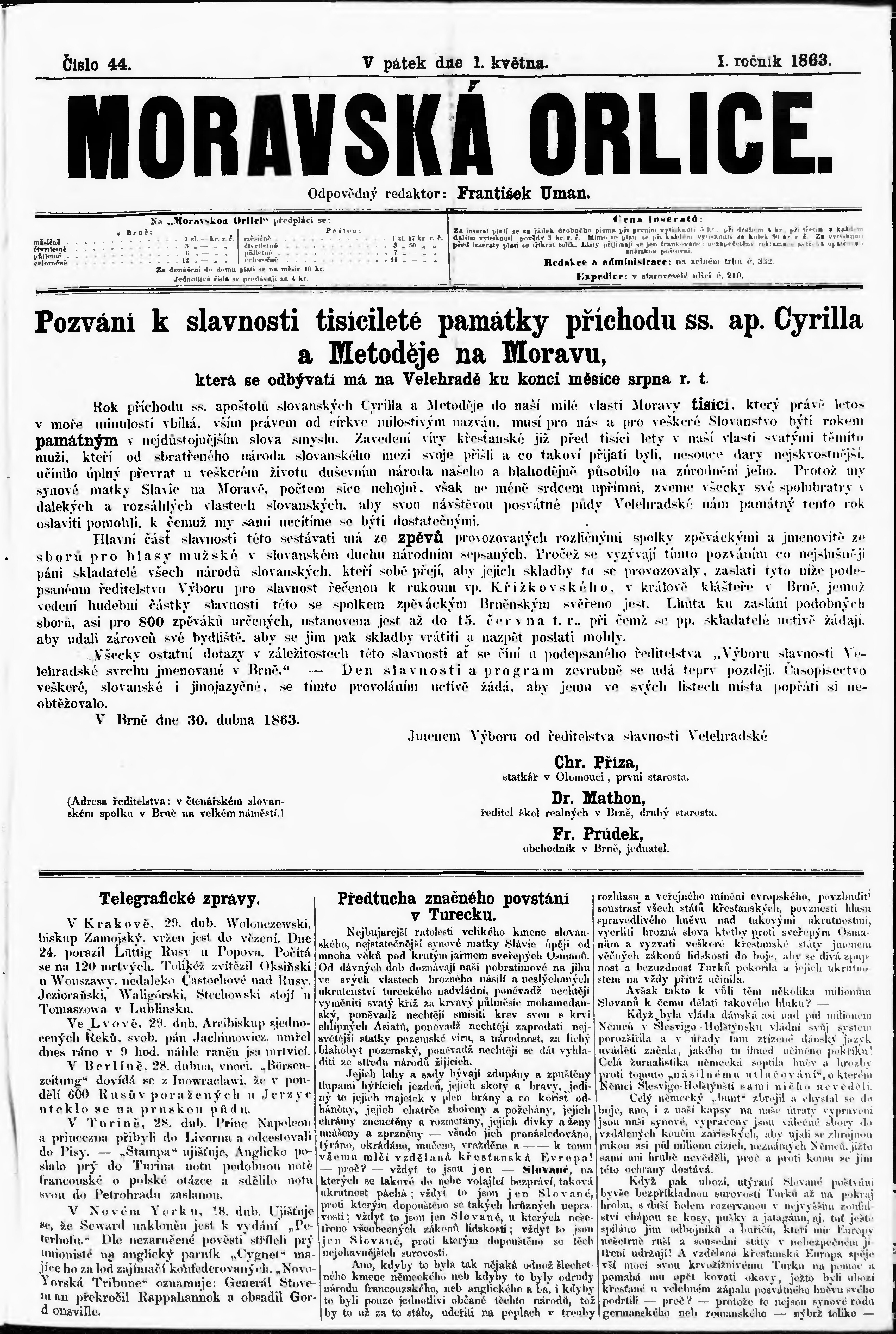 * Datum vydání výtisku: 1.5.1863 Číslo výtisku: 44