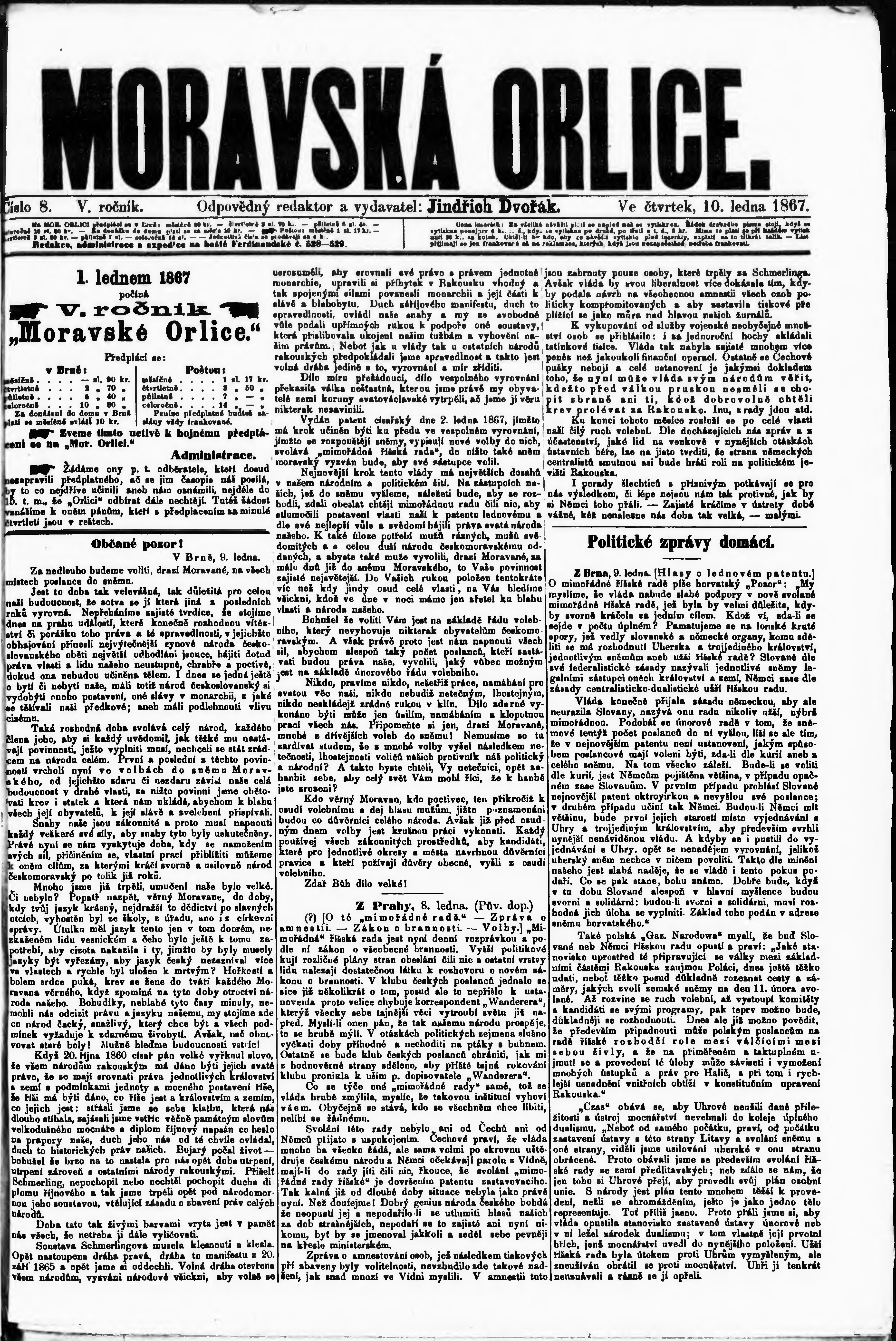 * Datum vydání výtisku: 10.1.1867 Číslo výtisku: 8