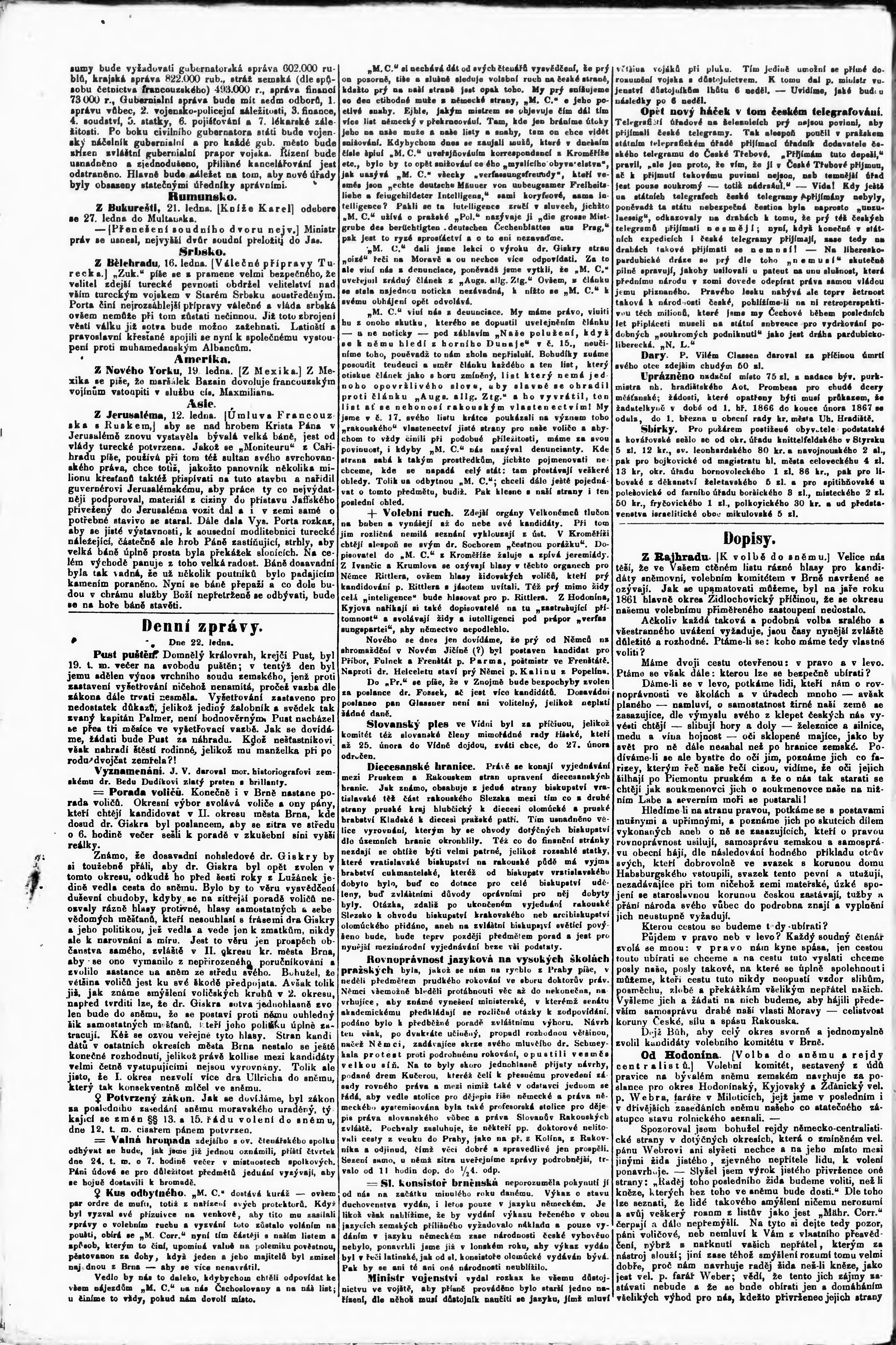 * Datum vydání výtisku: 23.1.1867 Číslo výtisku: 19