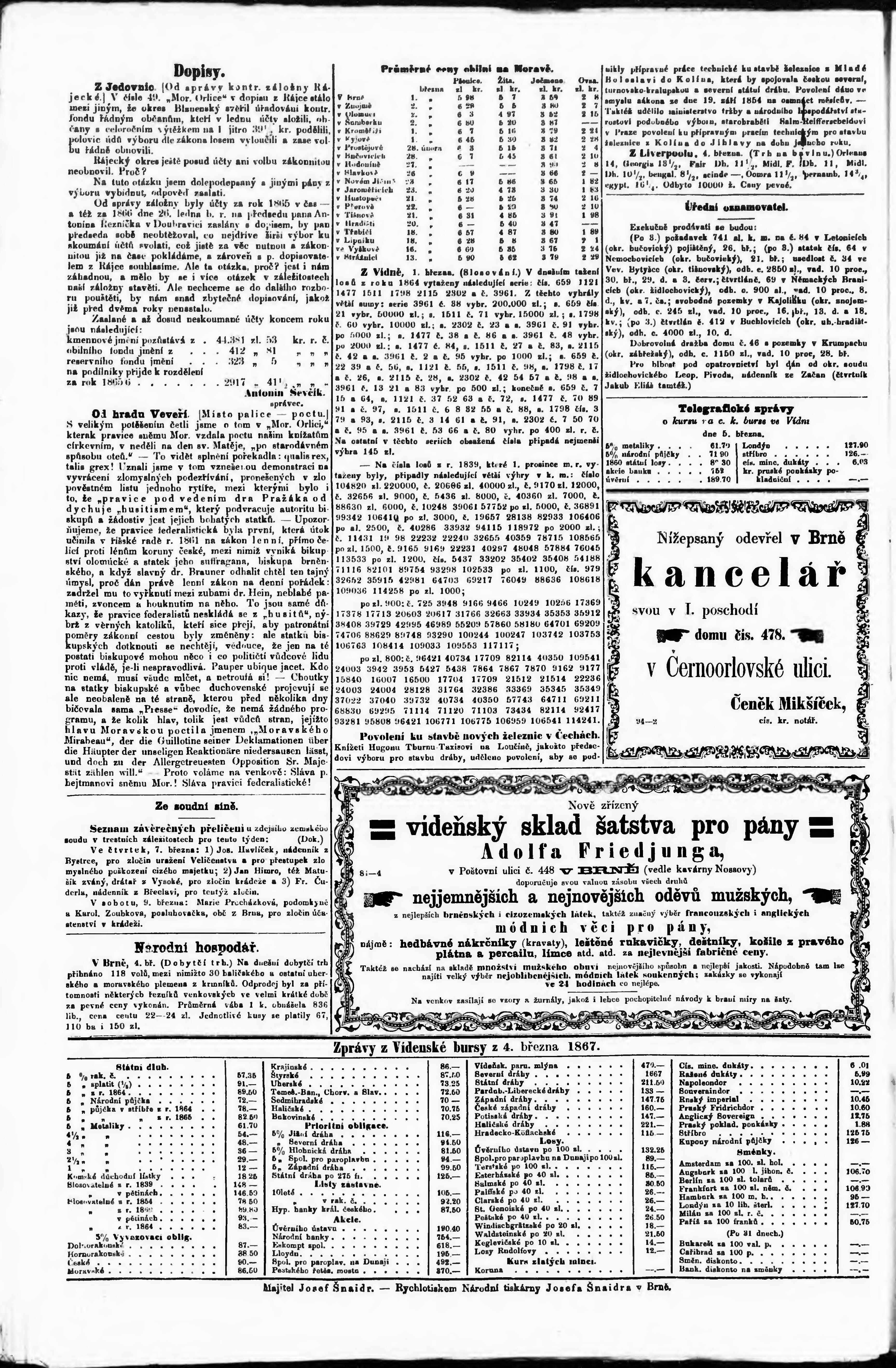 * Datum vydání výtisku: 6.3.1867 Číslo výtisku: 54