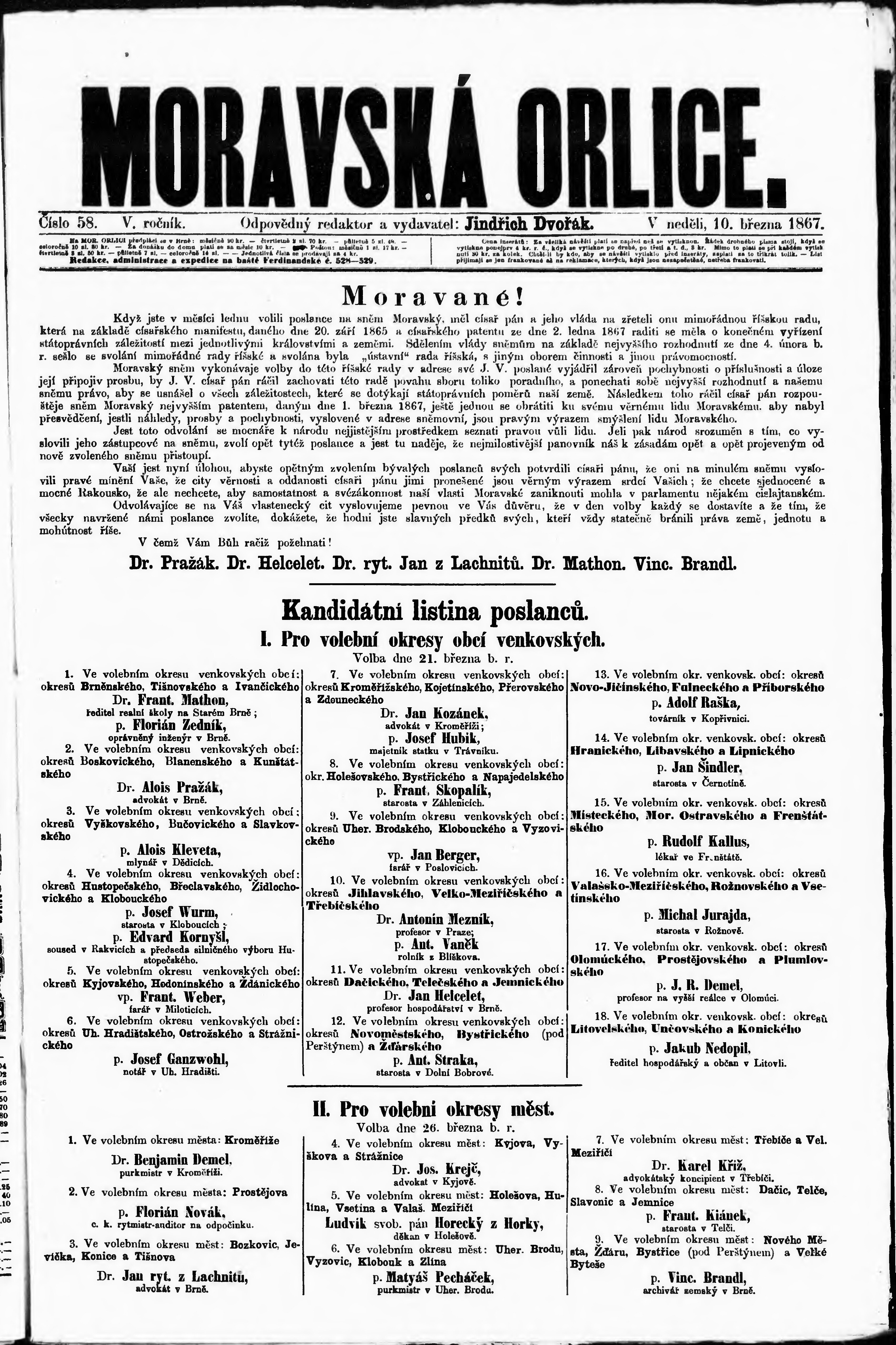 * Datum vydání výtisku: 10.3.1867 Číslo výtisku: 58