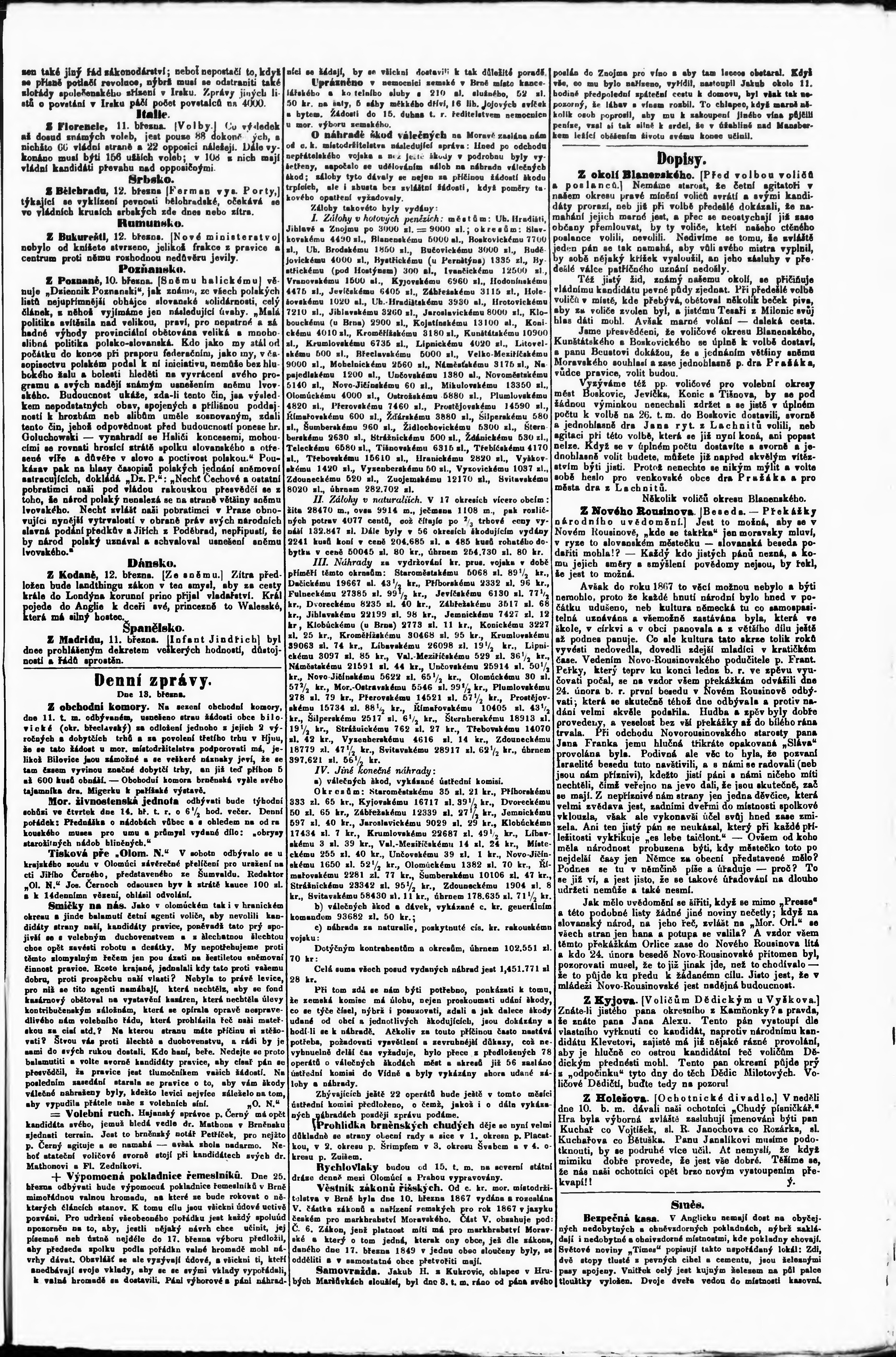 * Datum vydání výtisku: 14.3.1867 Číslo výtisku: 61