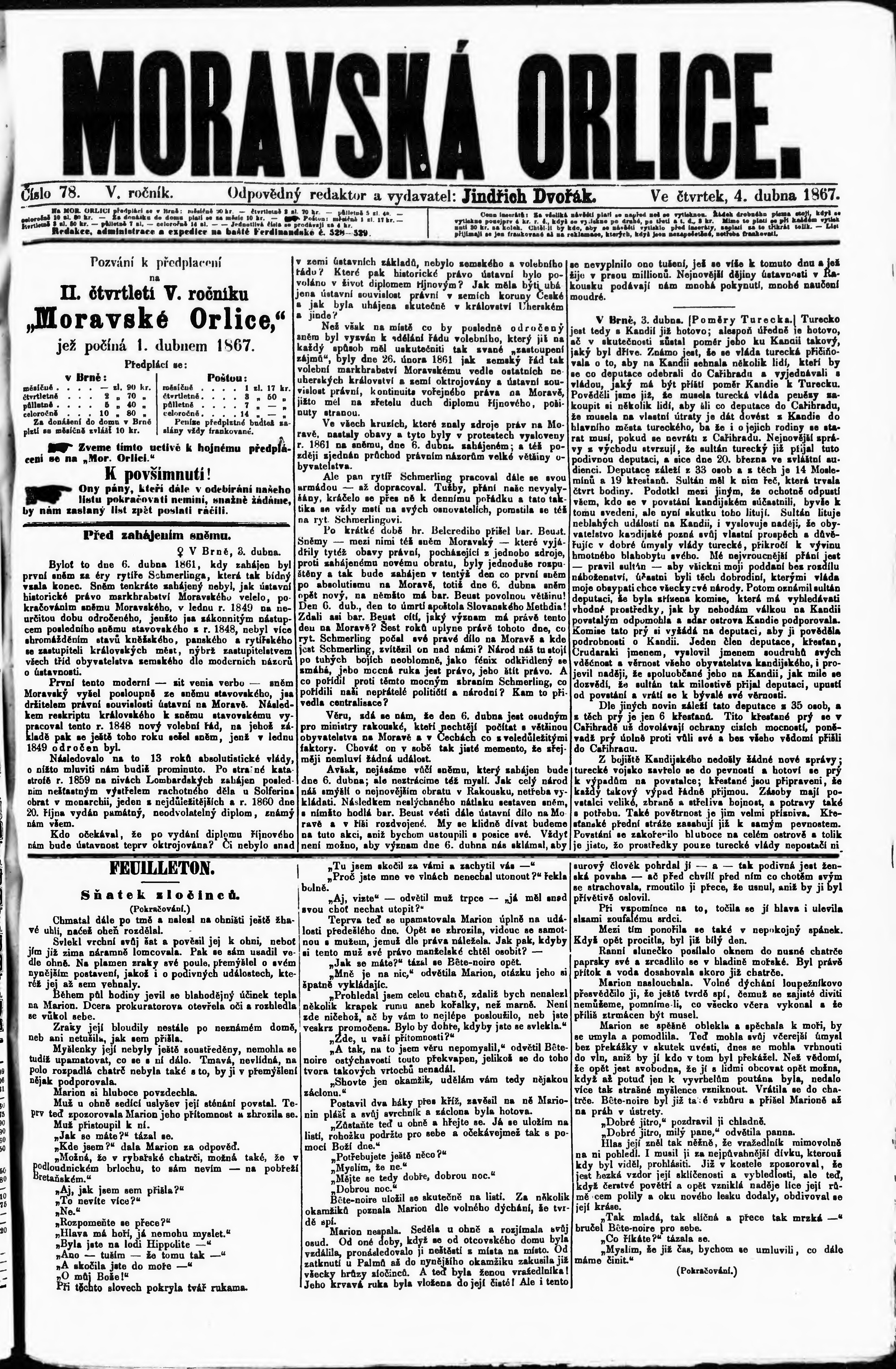 * Datum vydání výtisku: 4.4.1867 Číslo výtisku: 78