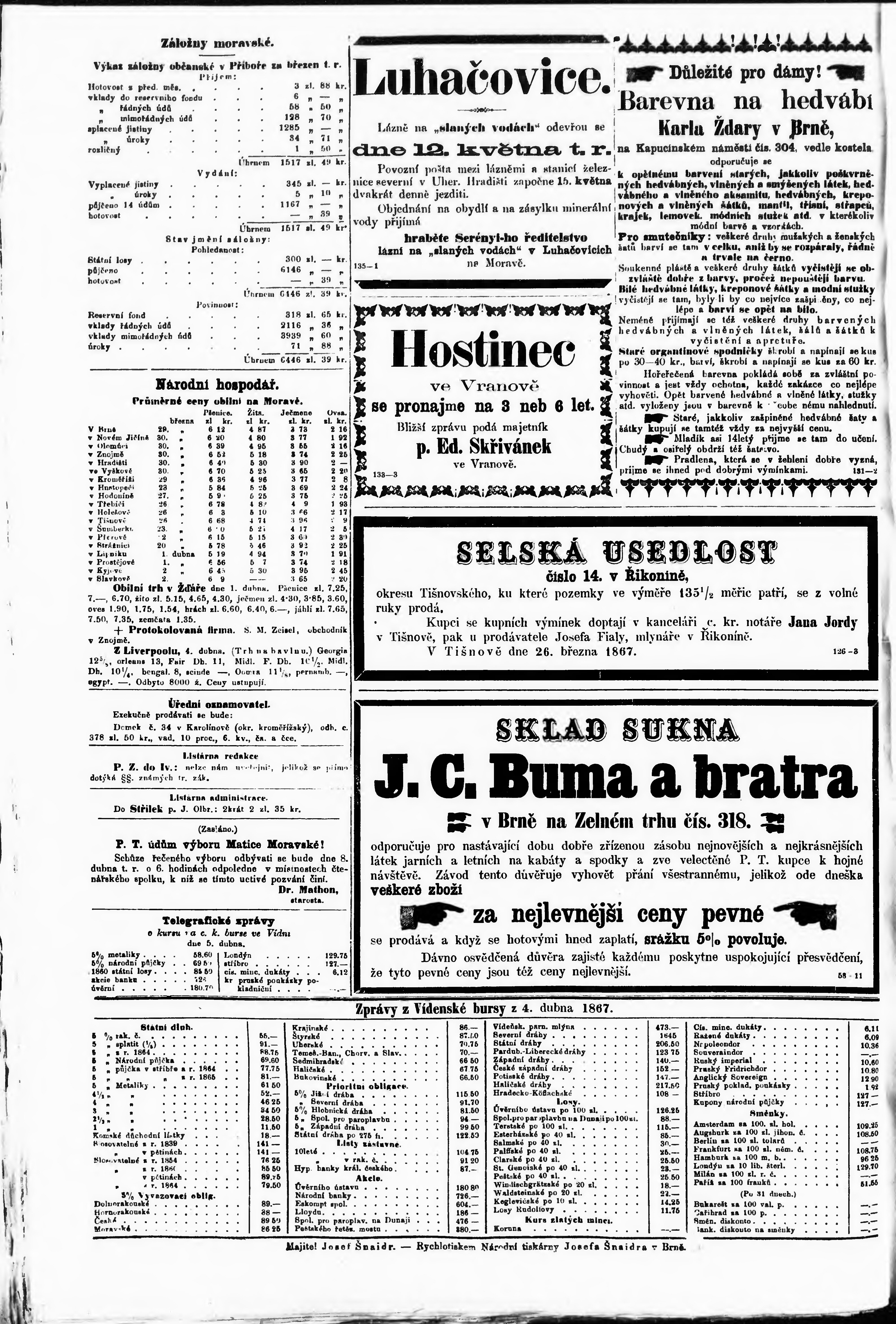 * Datum vydání výtisku: 6.4.1867 Číslo výtisku: 80
