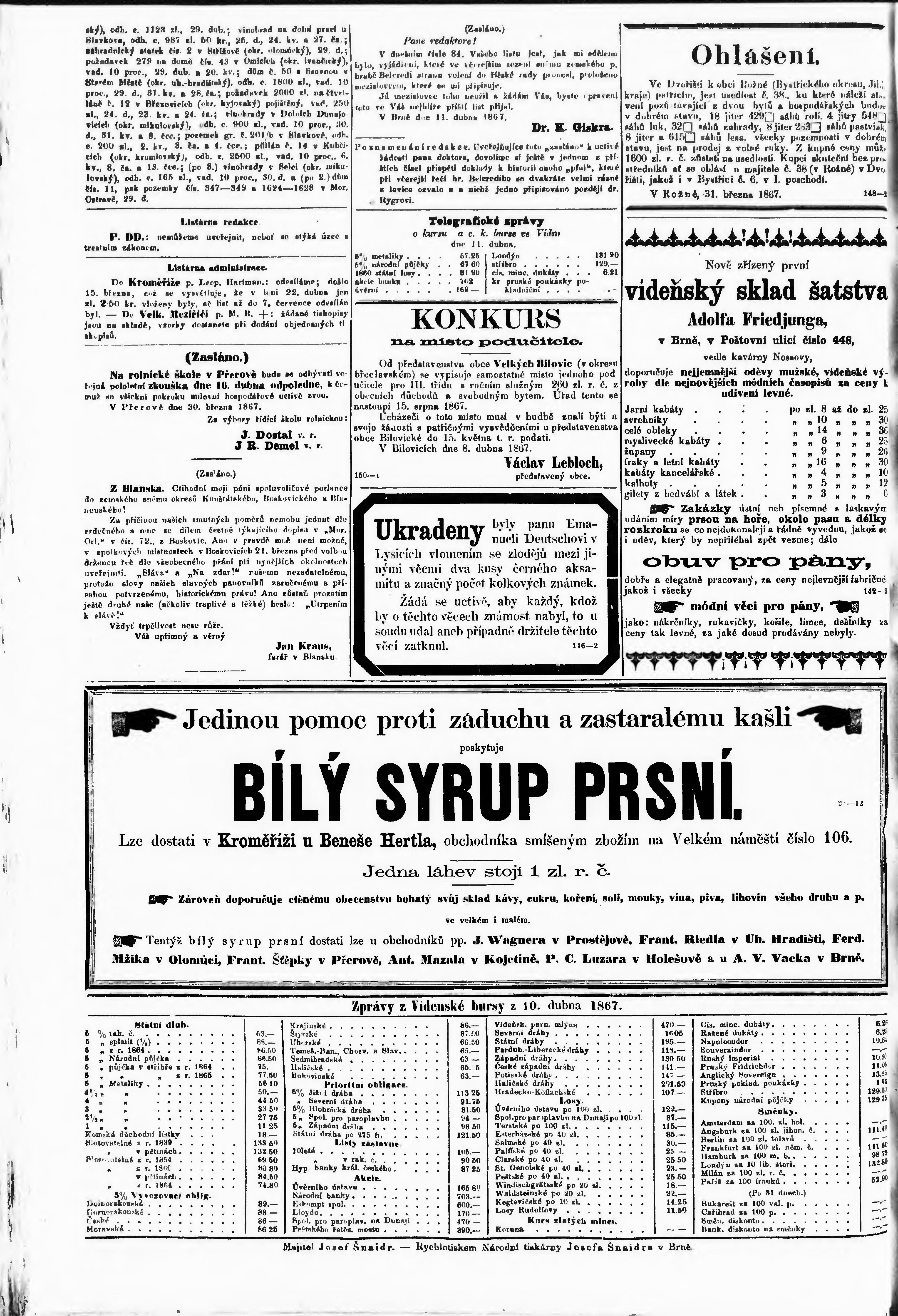 * Datum vydání výtisku: 12.4.1867 Číslo výtisku: 85