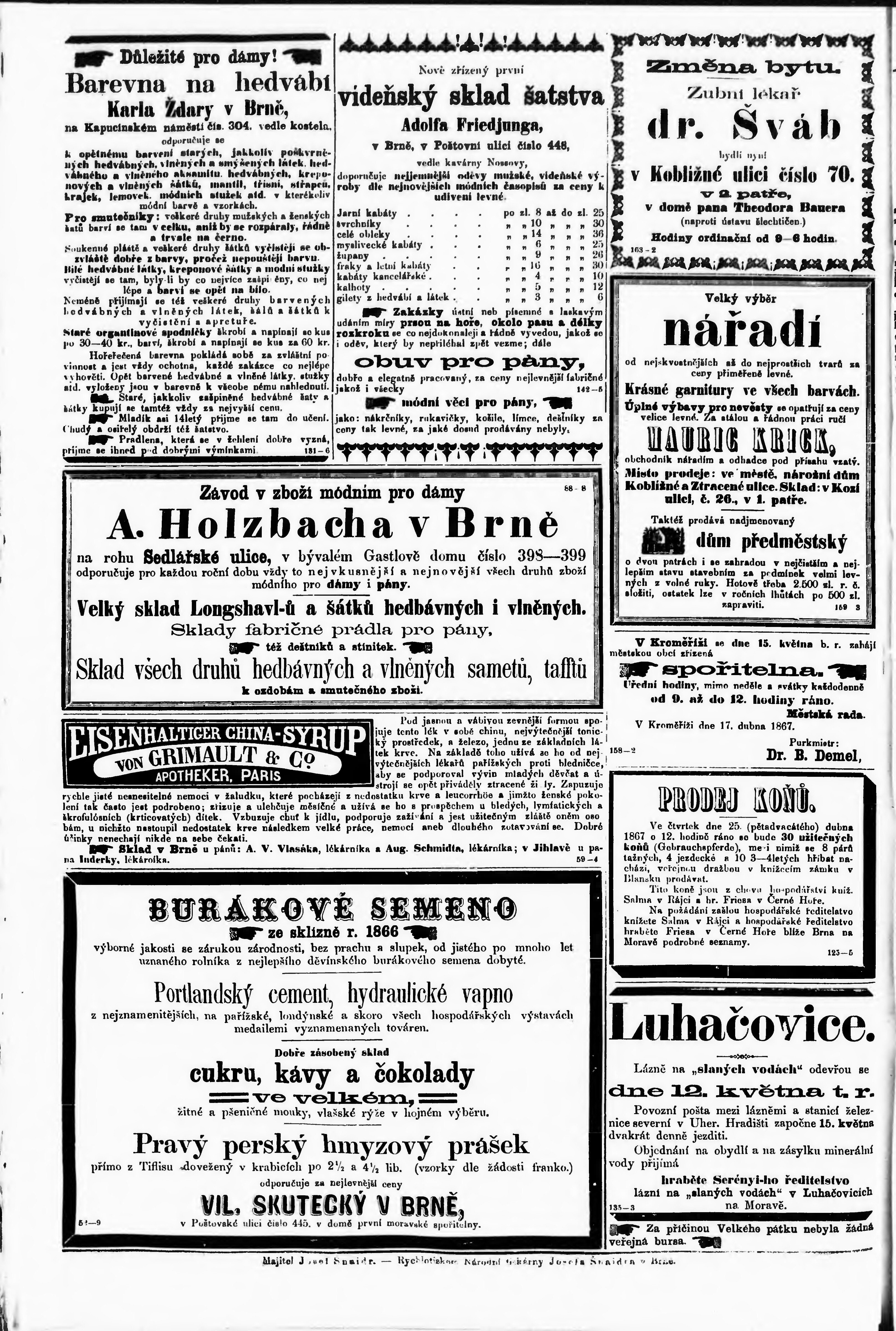 * Datum vydání výtisku: 21.4.1867 Číslo výtisku: 93