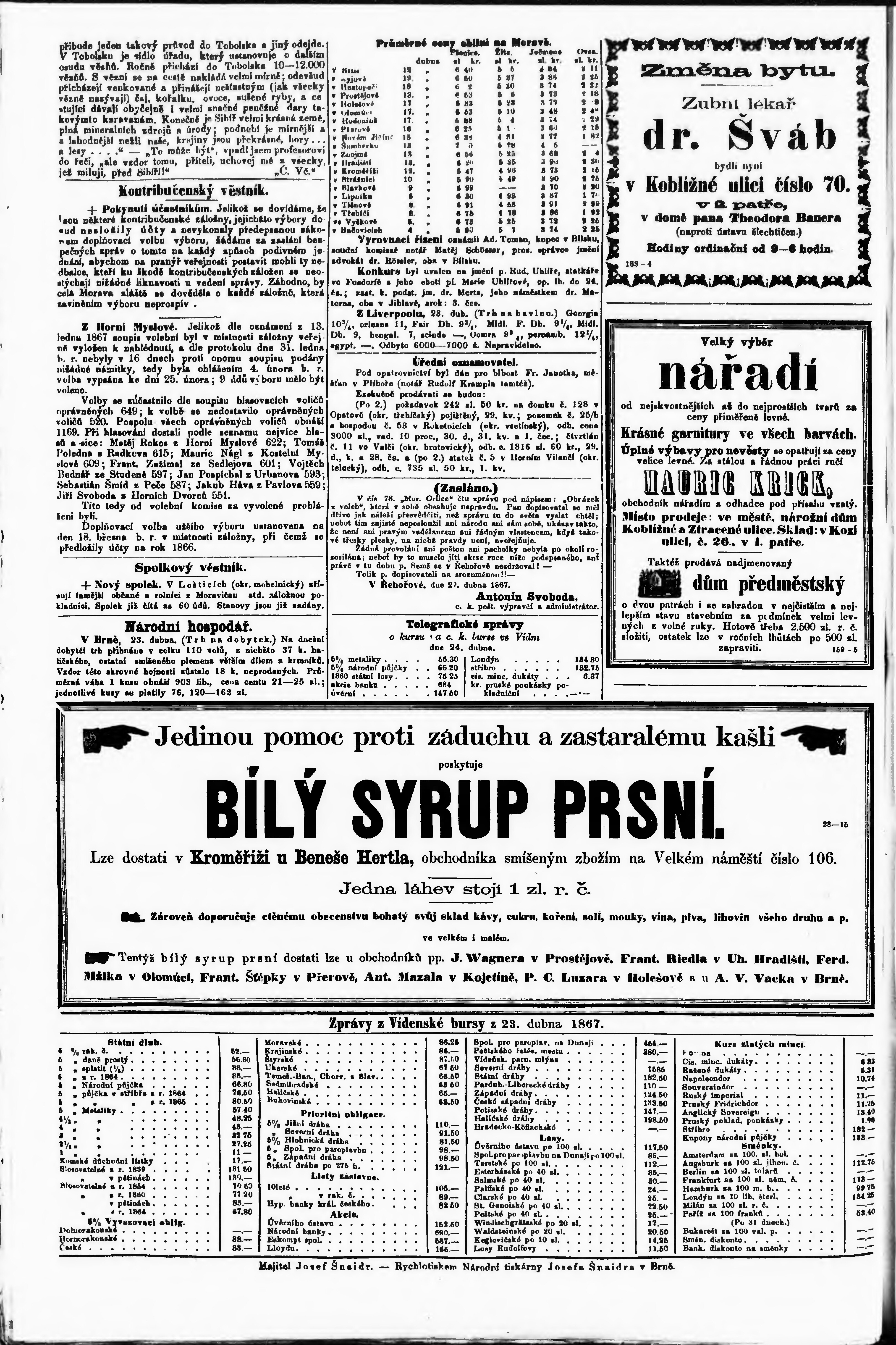 * Datum vydání výtisku: 25.4.1867 Číslo výtisku: 95