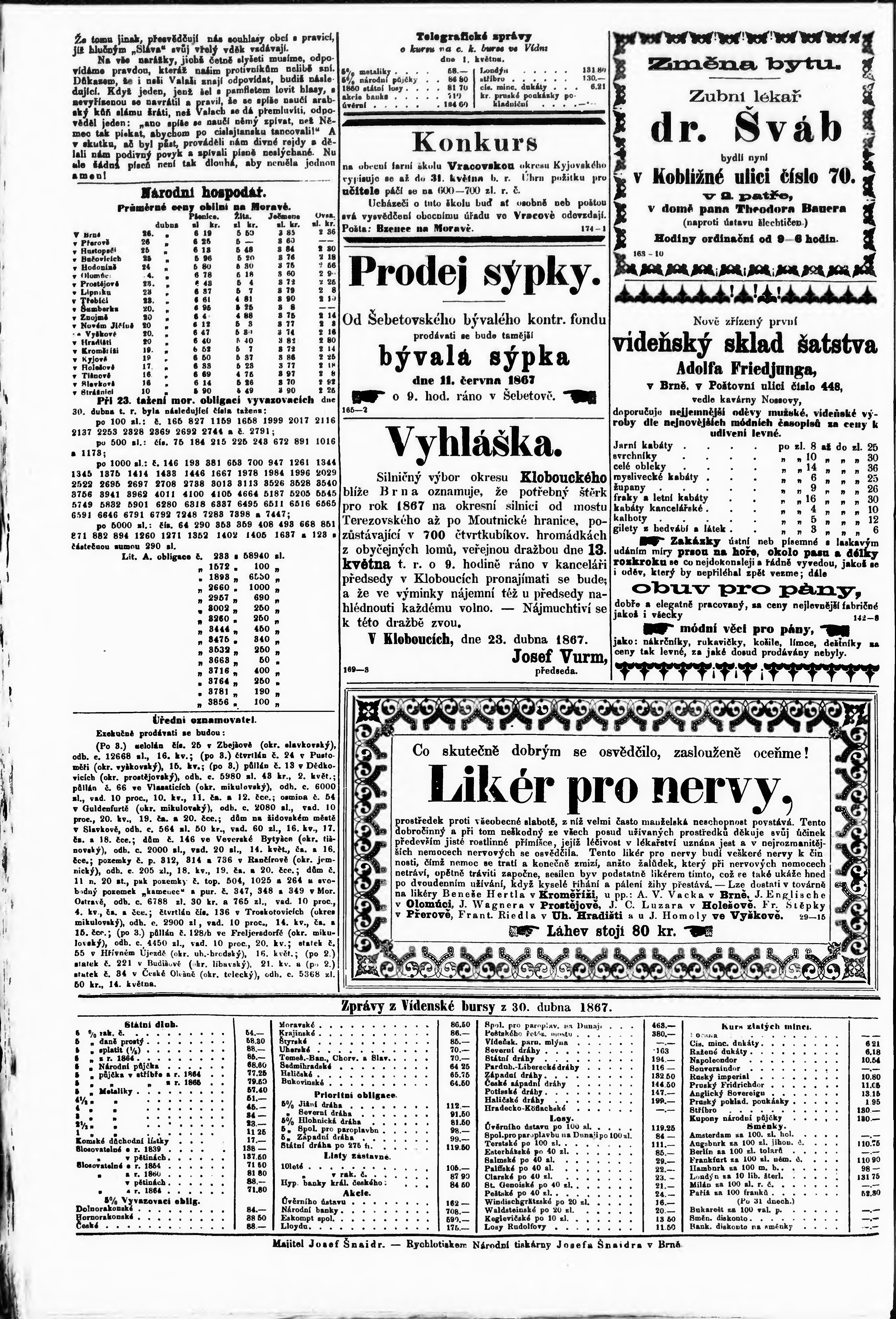 * Datum vydání výtisku: 2.5.1867 Číslo výtisku: 101