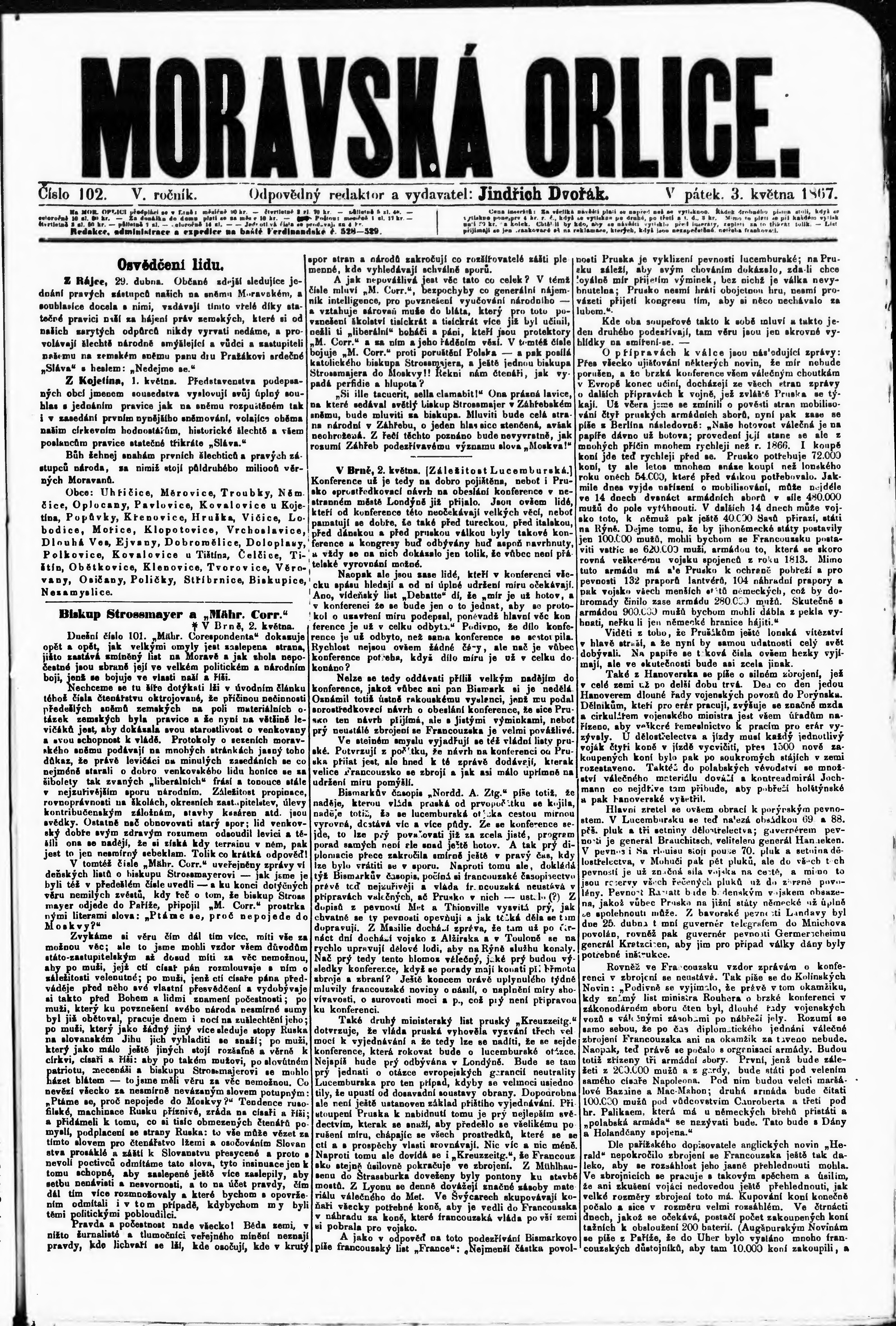 * Datum vydání výtisku: 3.5.1867 Číslo výtisku: 102
