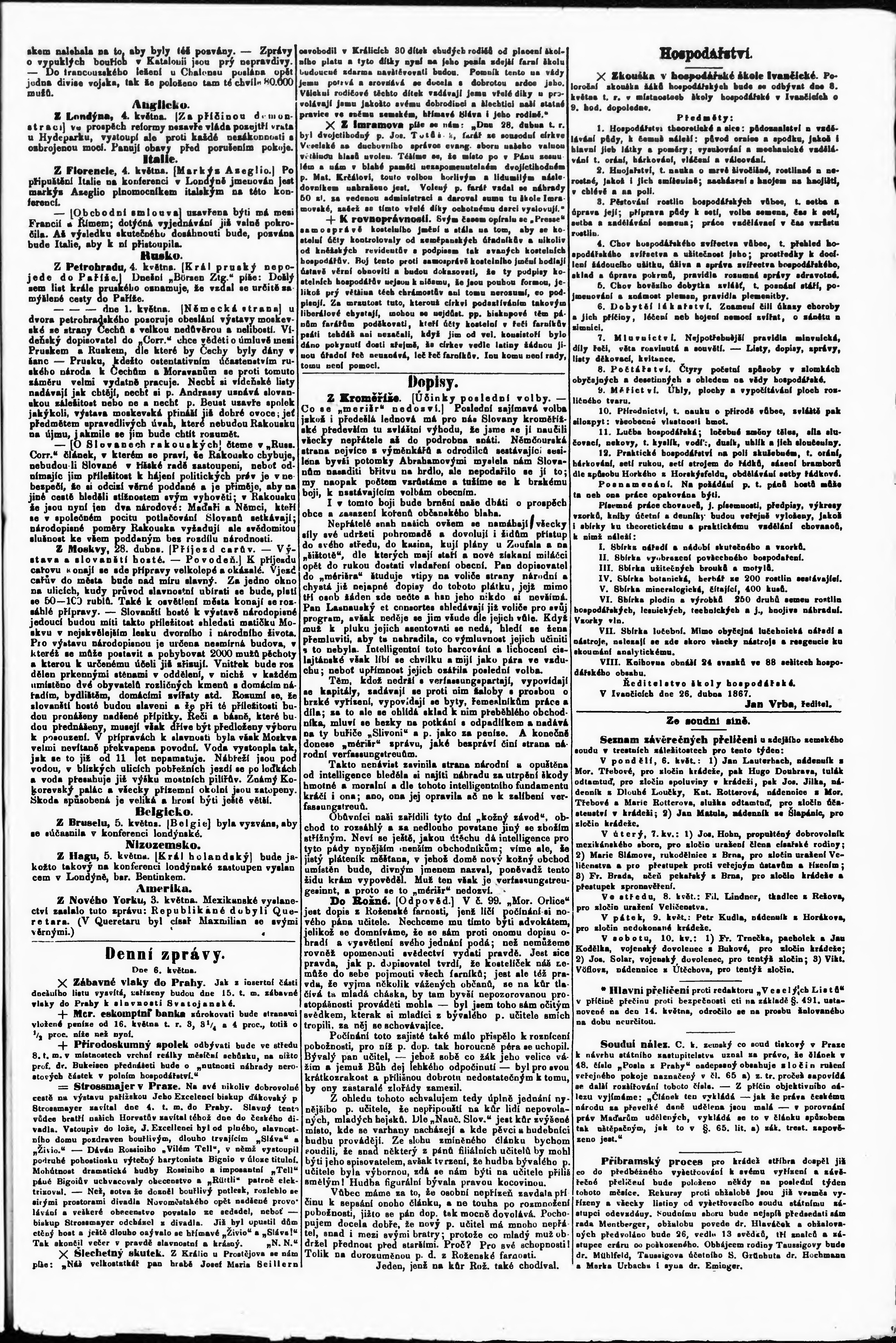 * Datum vydání výtisku: 7.5.1867 Číslo výtisku: 105