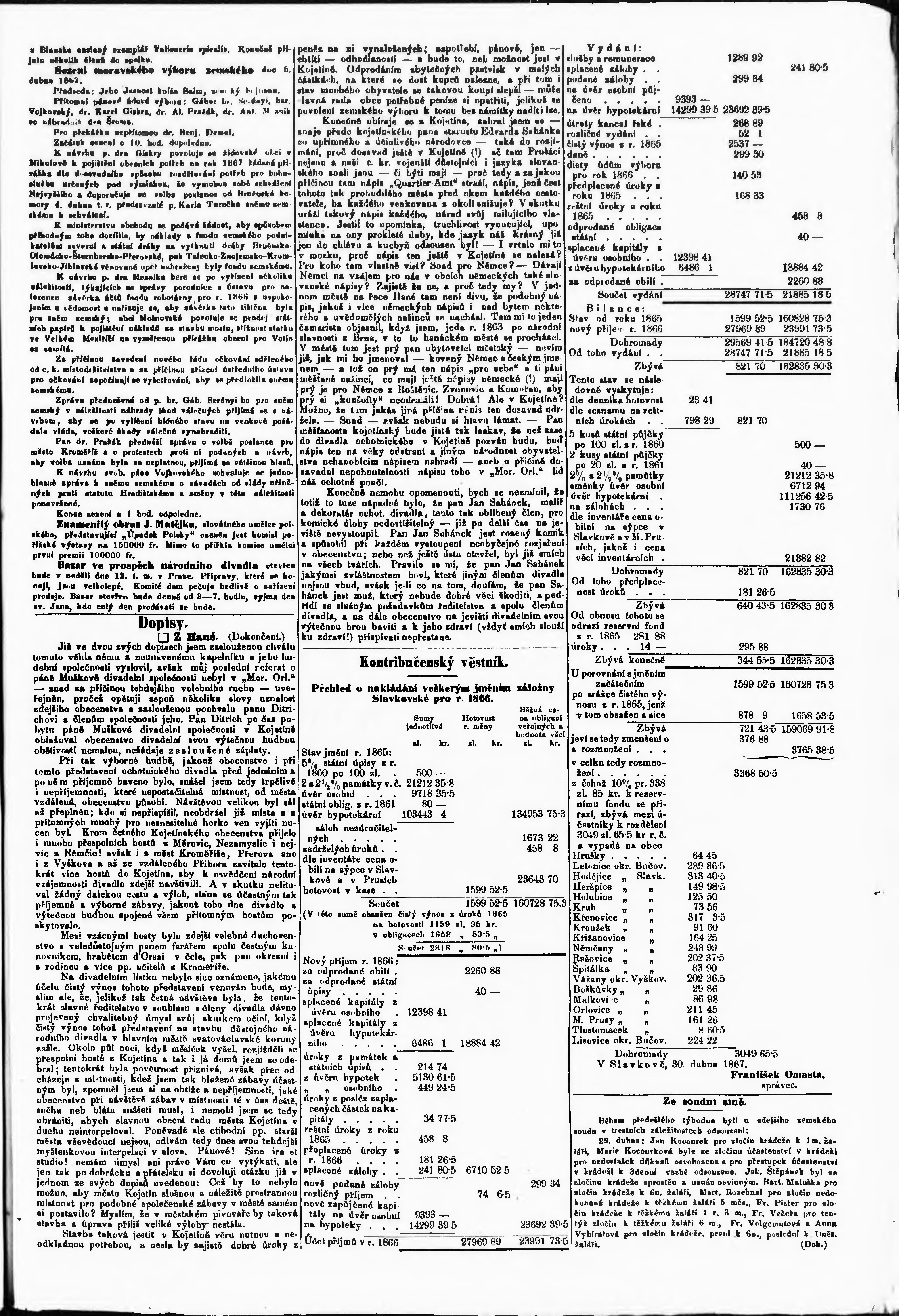 * Datum vydání výtisku: 11.5.1867 Číslo výtisku: 109