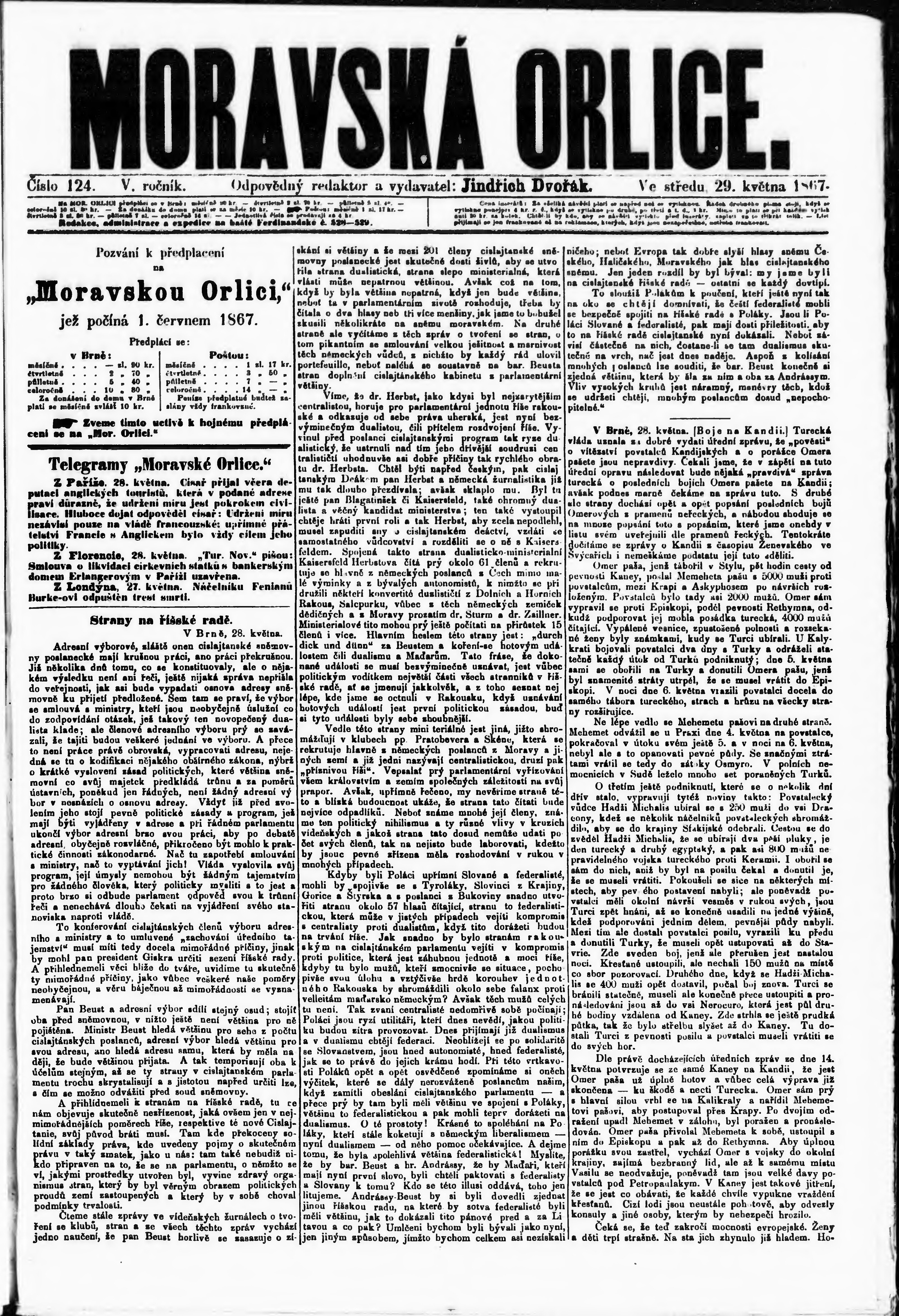 * Datum vydání výtisku: 29.5.1867 Číslo výtisku: 124