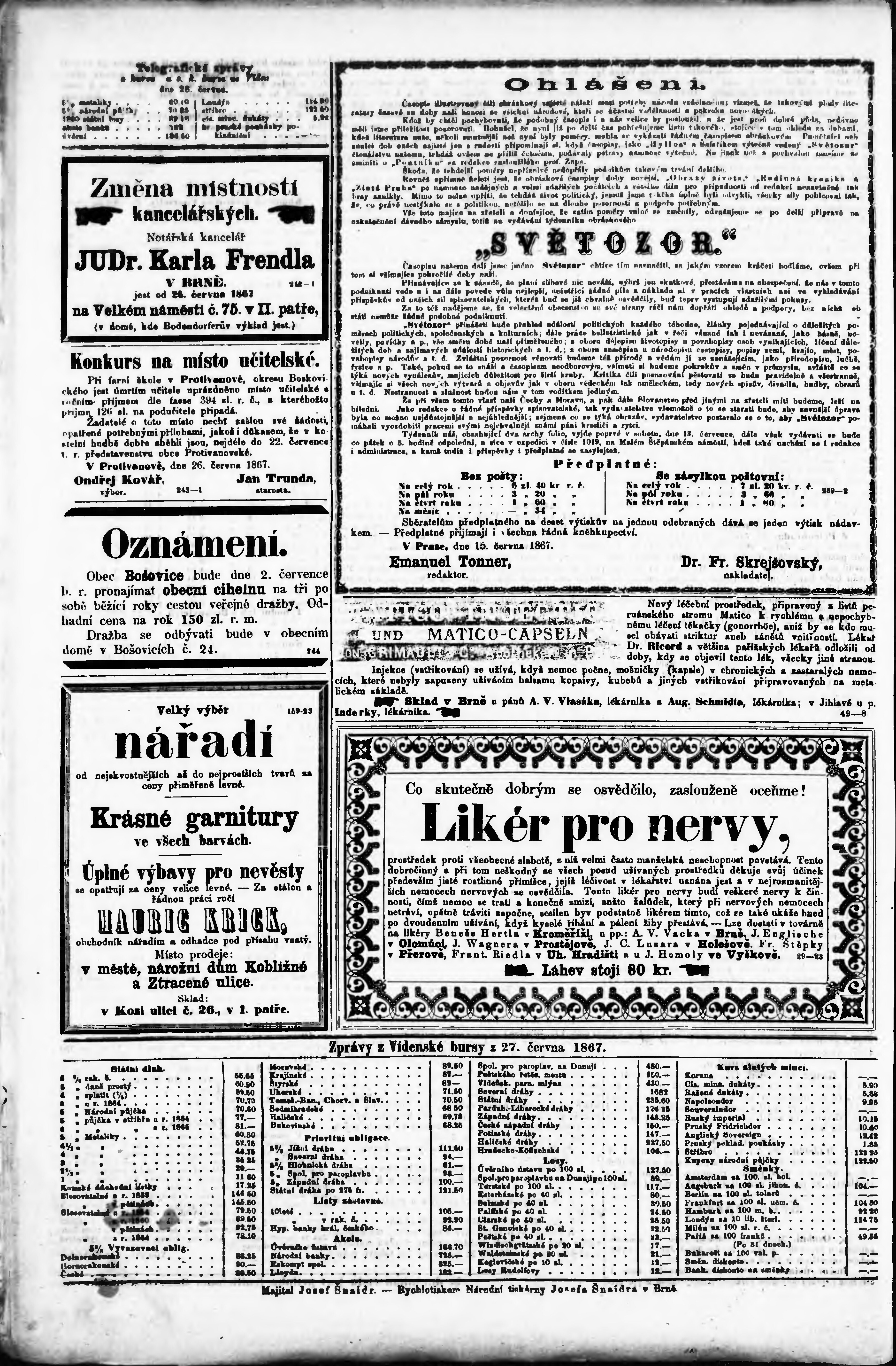 * Datum vydání výtisku: 29.6.1867 Číslo výtisku: 148
