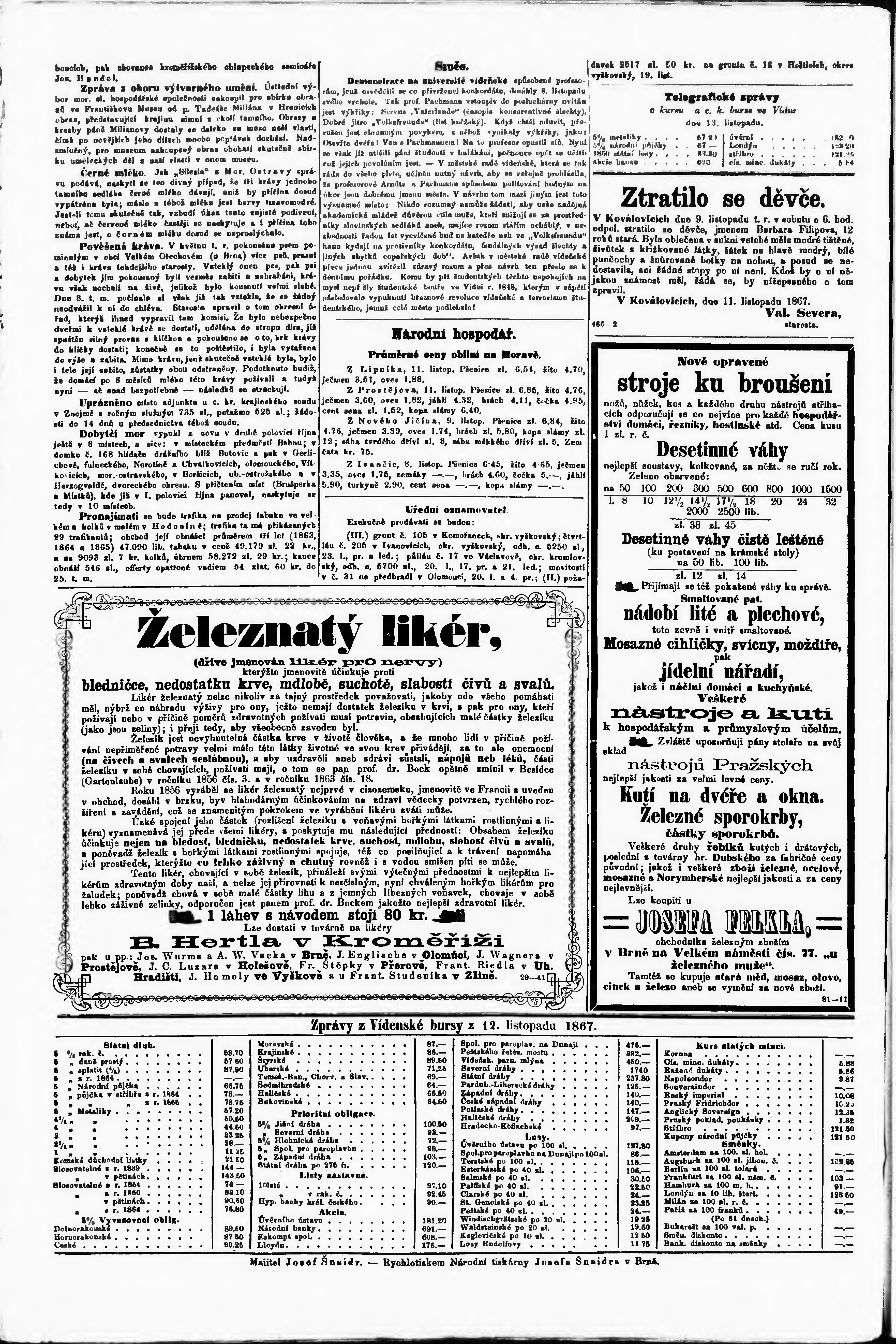 * Datum vydání výtisku: 14.11.1867 Číslo výtisku: 262