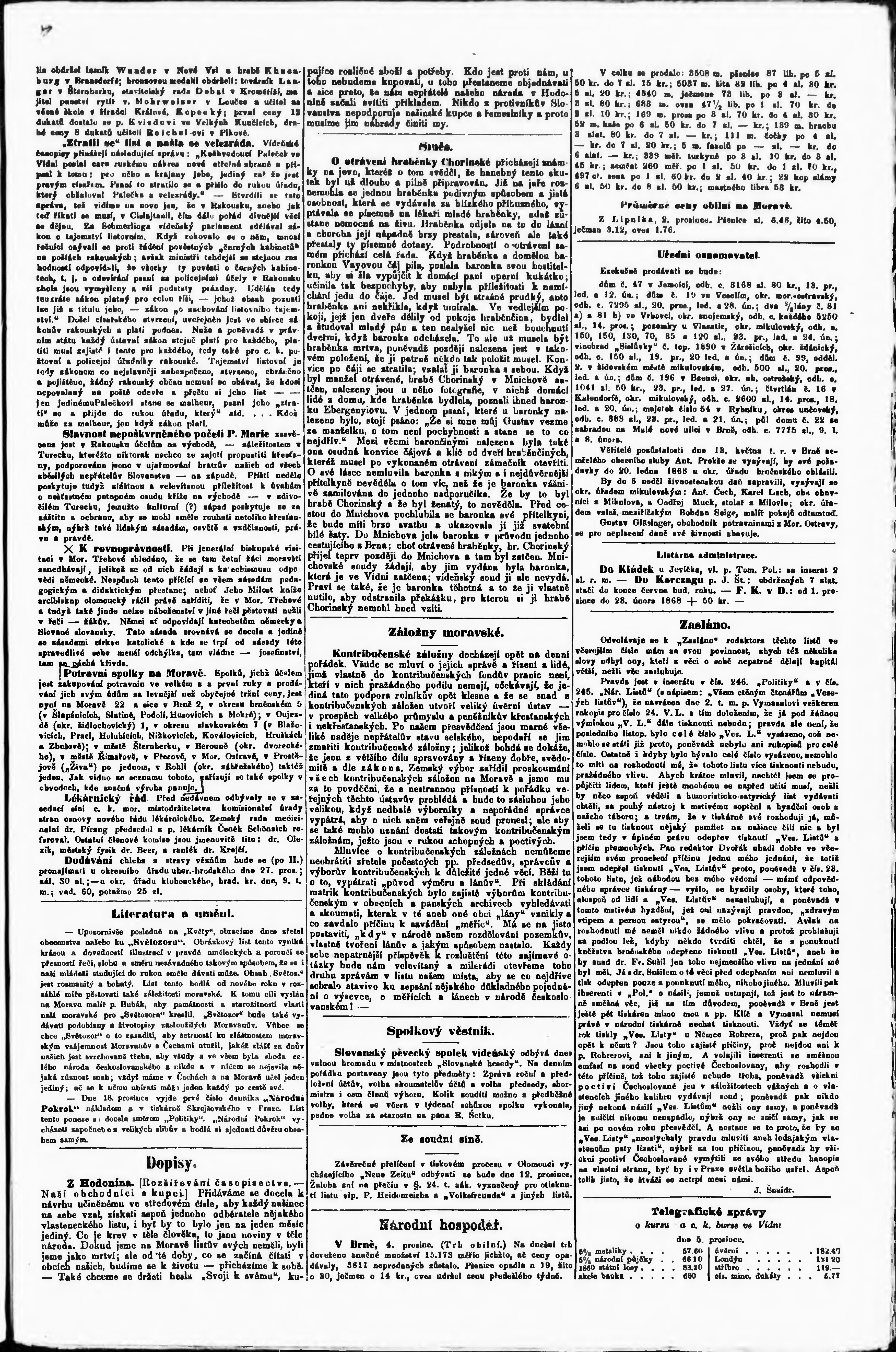 * Datum vydání výtisku: 6.12.1867 Číslo výtisku: 281