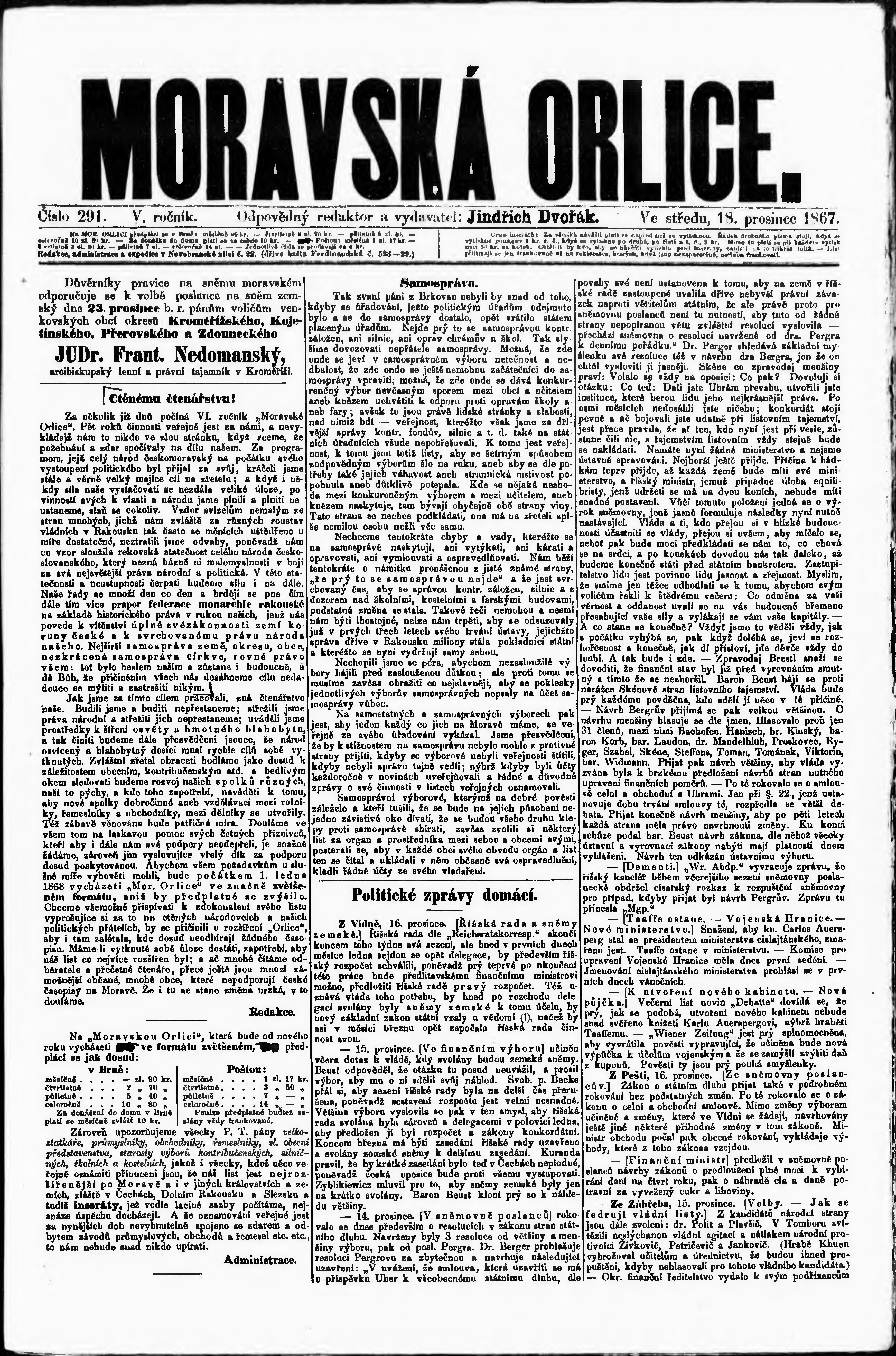 * Datum vydání výtisku: 18.12.1867 Číslo výtisku: 291