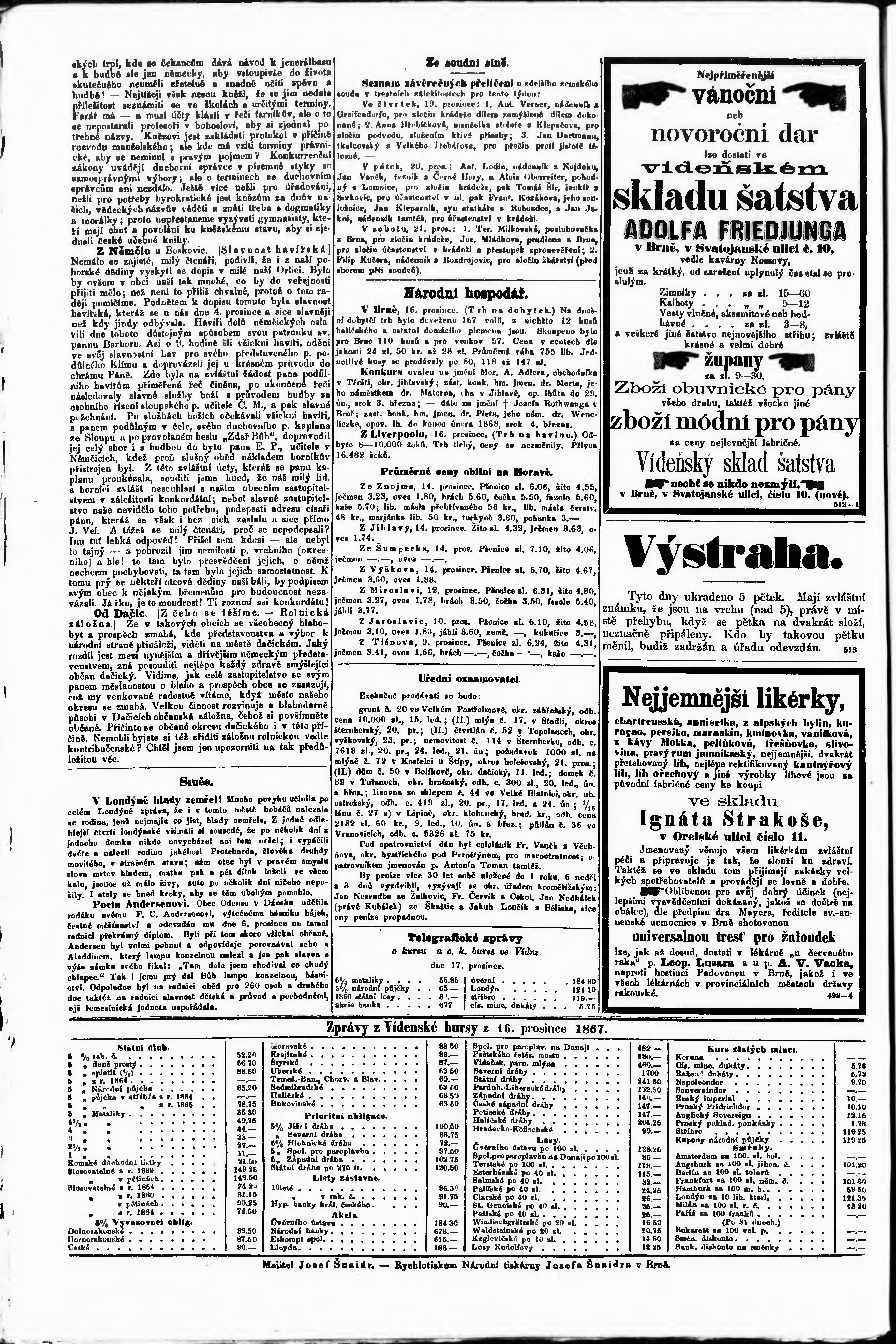 * Datum vydání výtisku: 18.12.1867 Číslo výtisku: 291