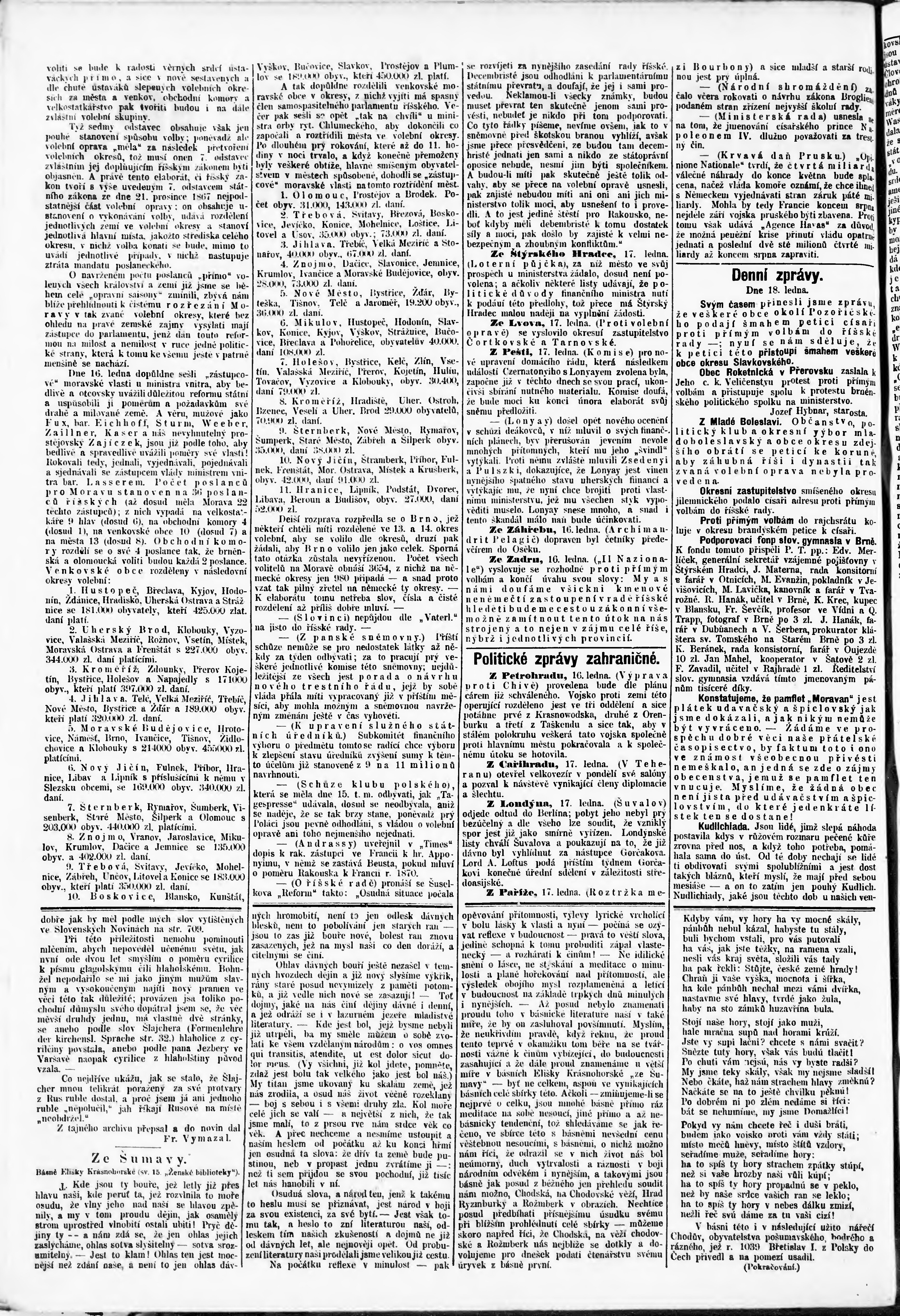 * Datum vydání výtisku: 19.1.1873 Číslo výtisku: 15