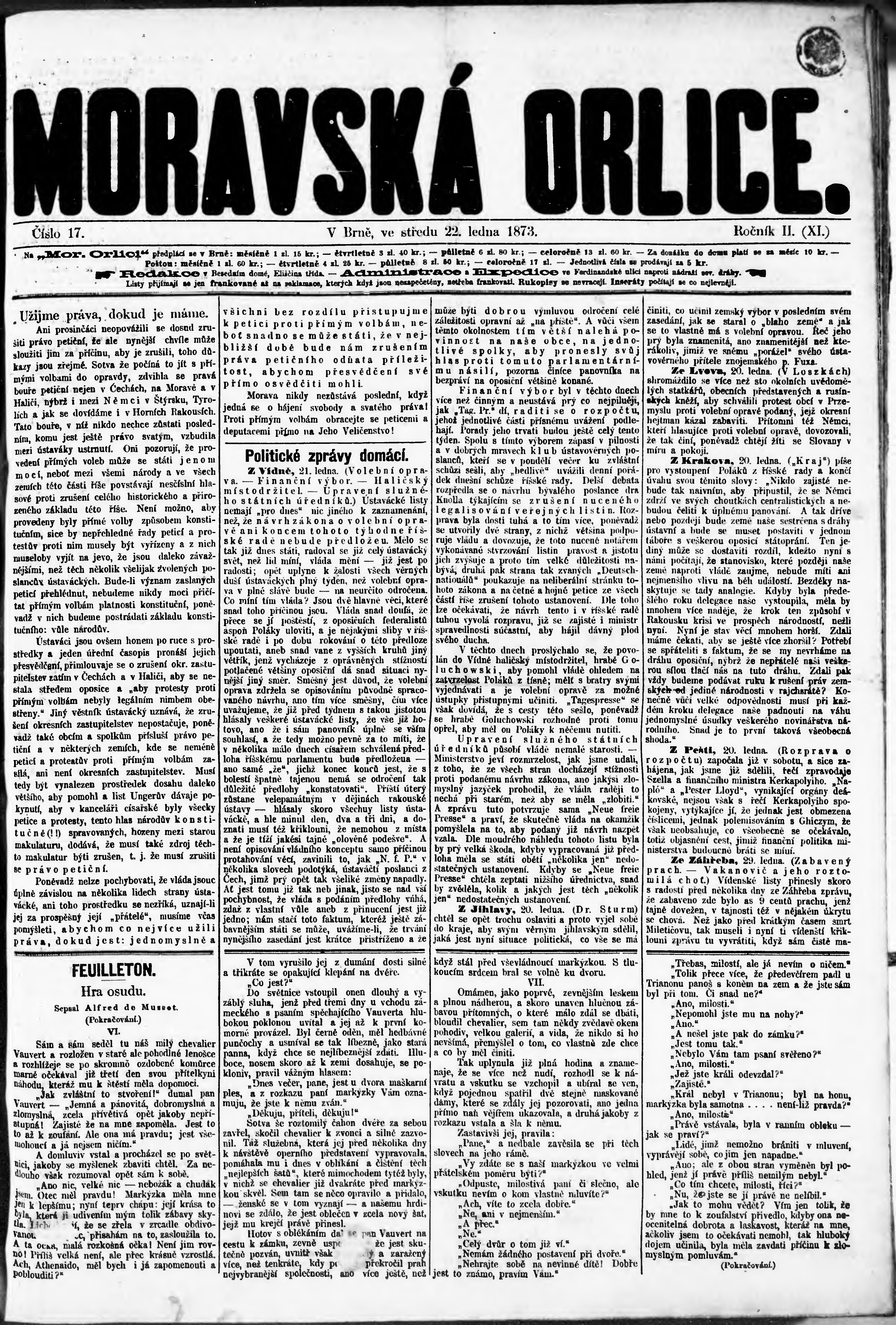 * Datum vydání výtisku: 22.1.1873 Číslo výtisku: 17
