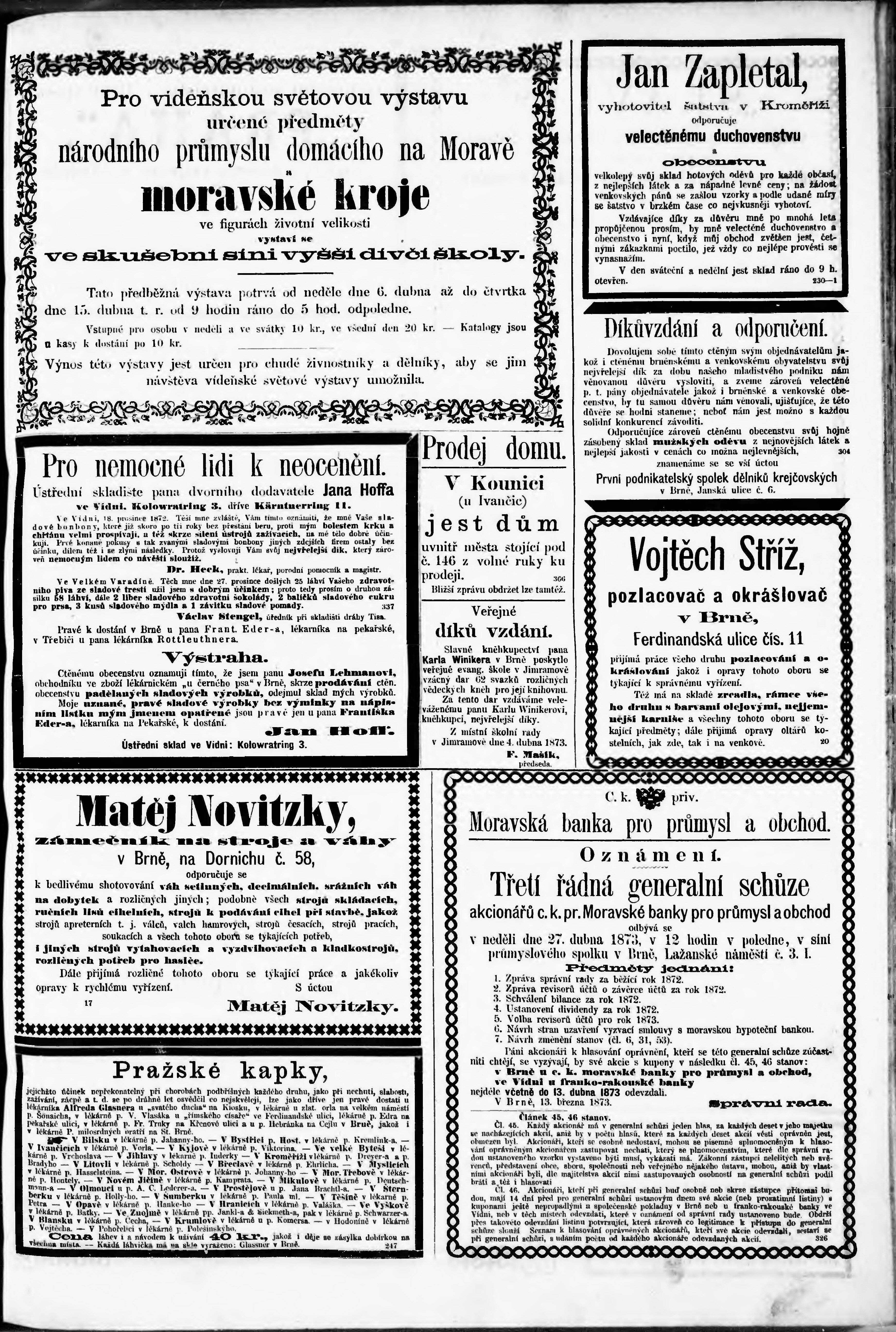 * Datum vydání výtisku: 6.4.1873 Číslo výtisku: 80