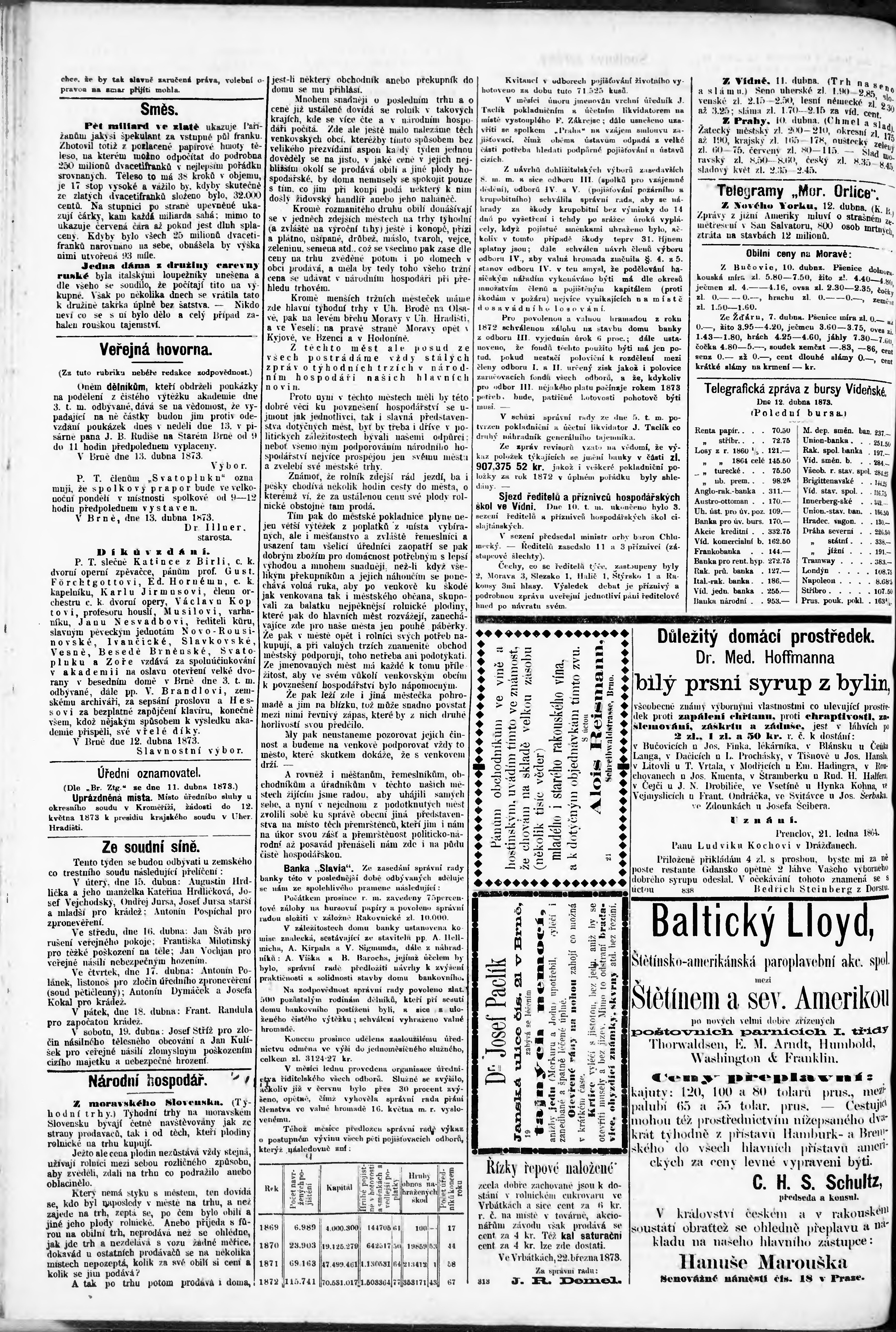 * Datum vydání výtisku: 13.4.1873 Číslo výtisku: 86