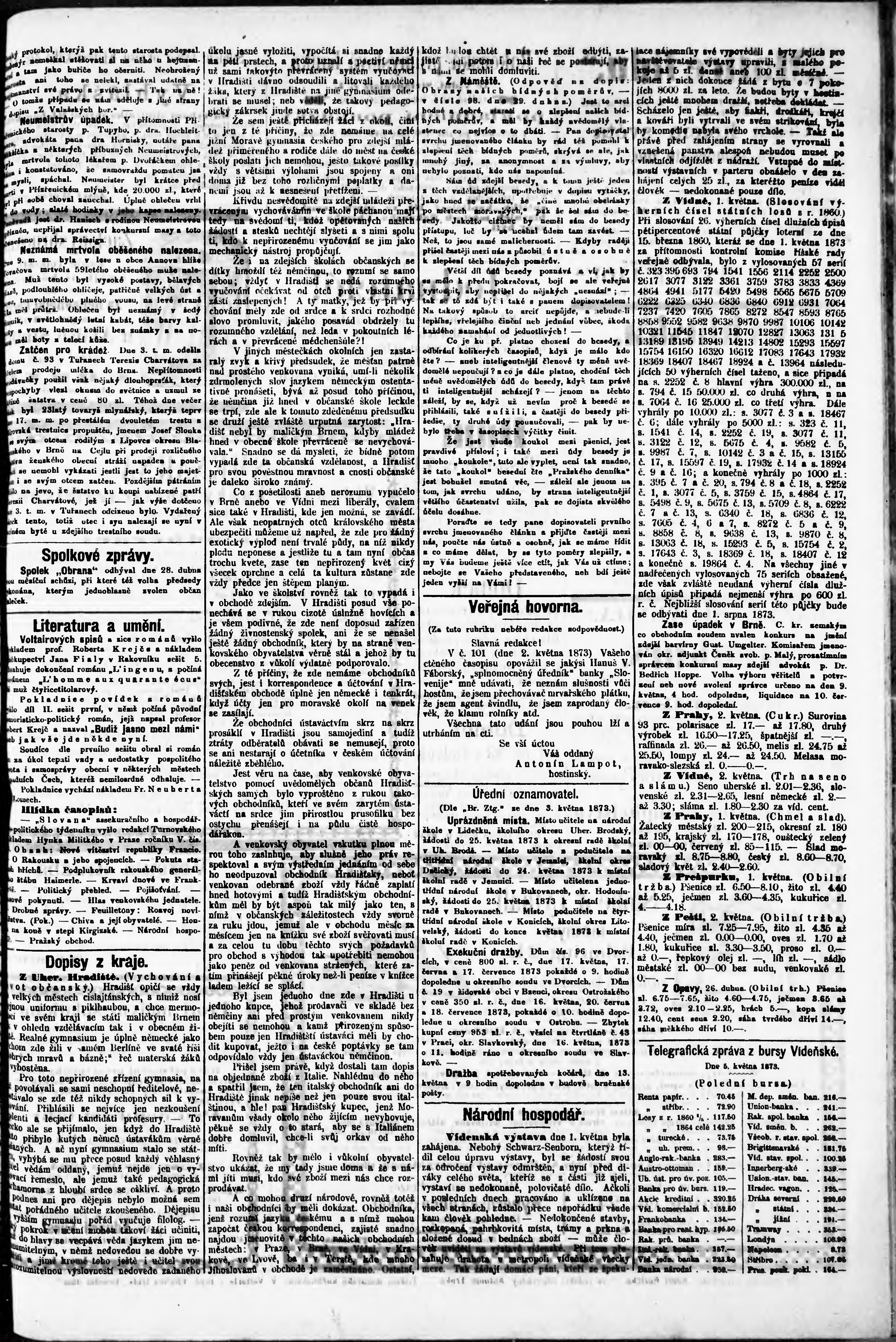 * Datum vydání výtisku: 6.5.1873 Číslo výtisku: 104