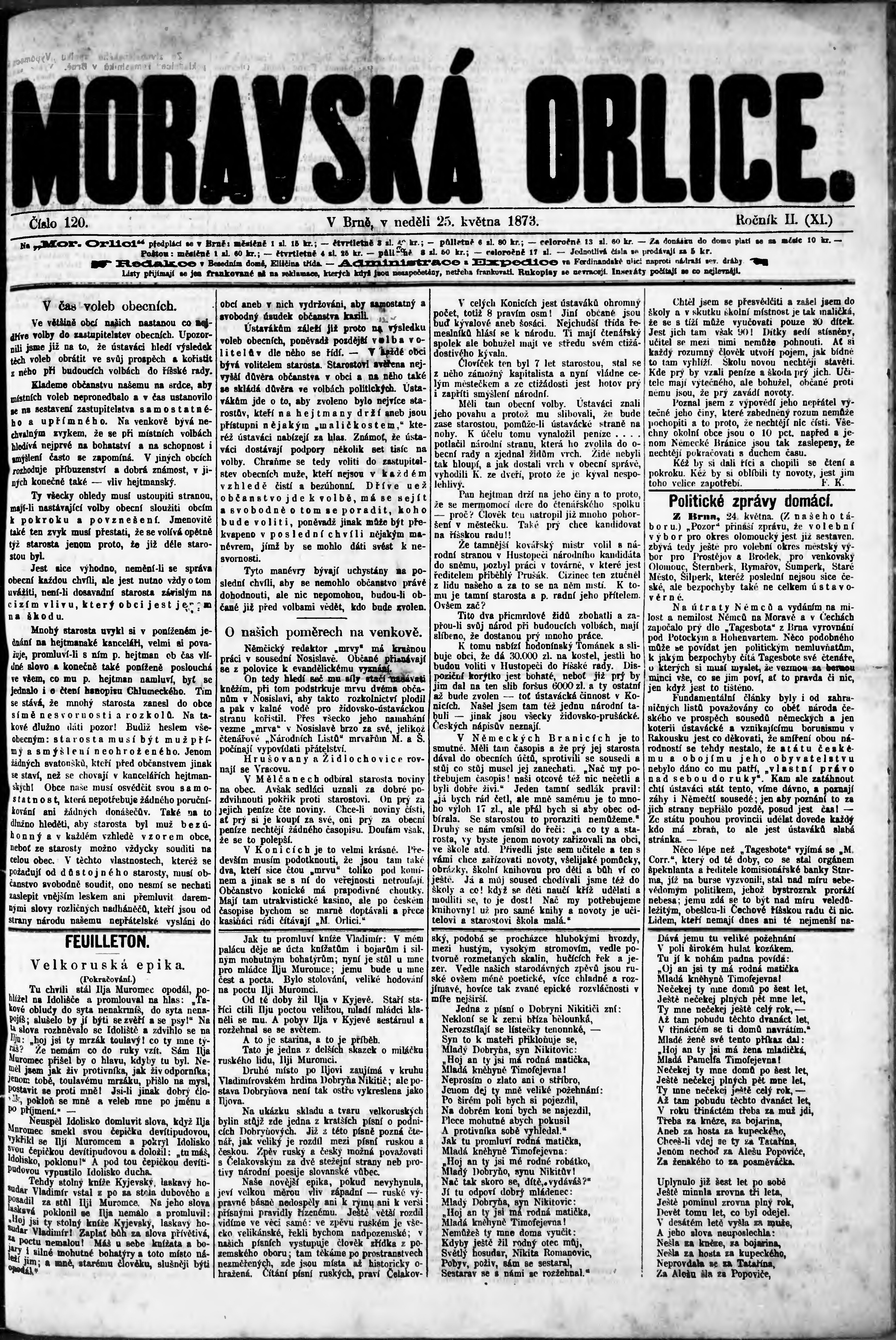 * Datum vydání výtisku: 25.5.1873 Číslo výtisku: 120