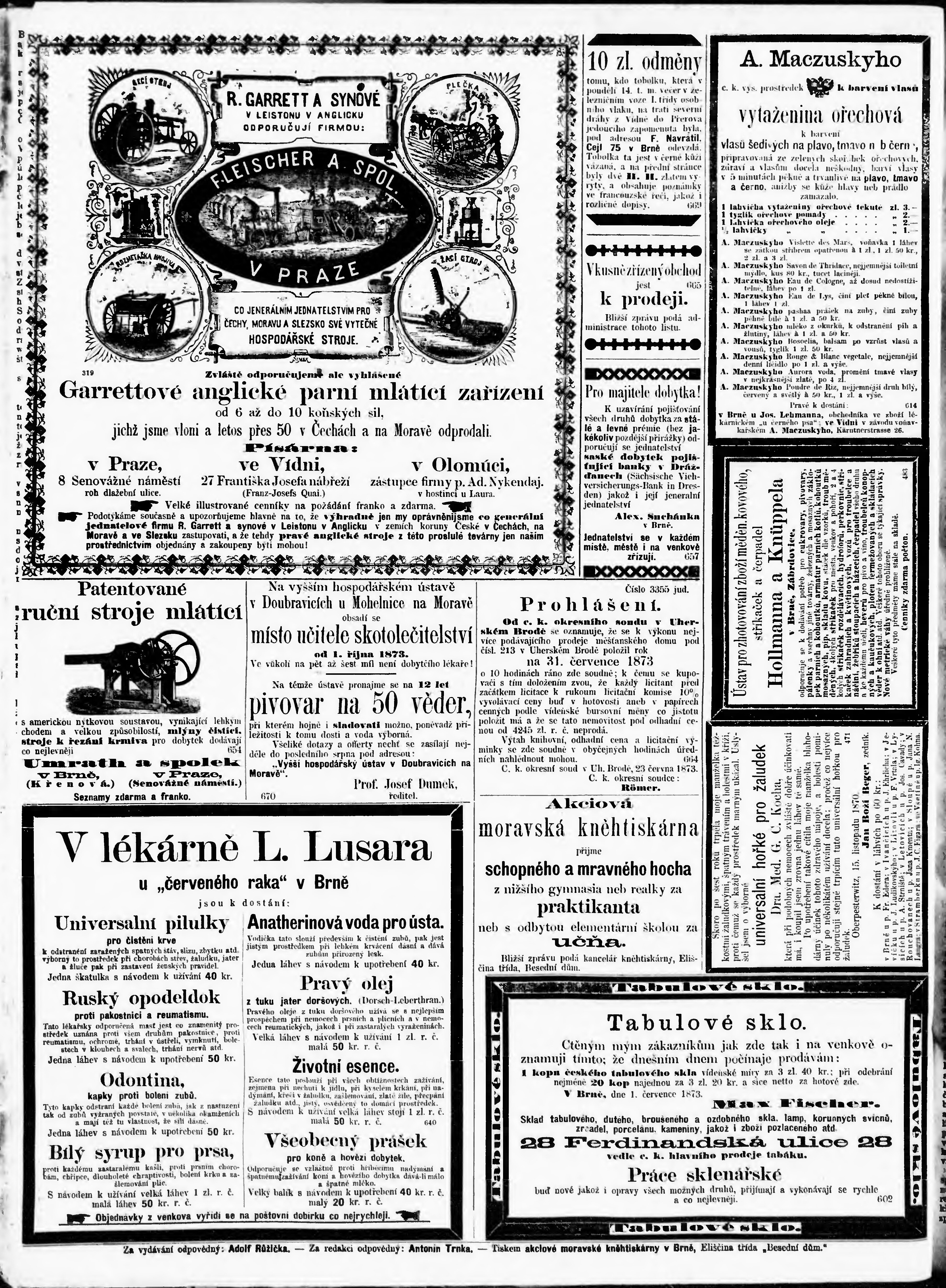 * Datum vydání výtisku: 23.7.1873 Číslo výtisku: 167