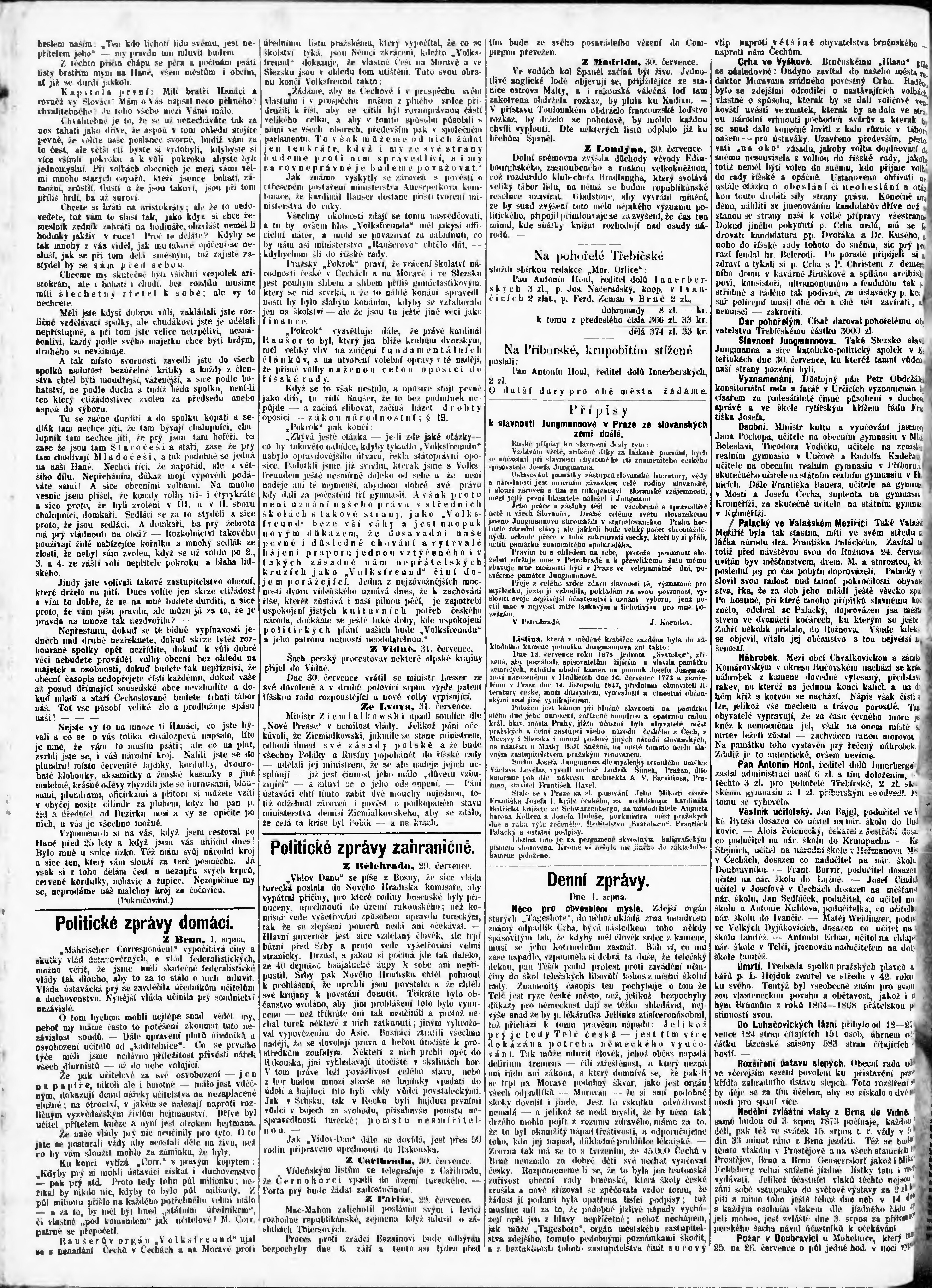 * Datum vydání výtisku: 2.8.1873 Číslo výtisku: 176