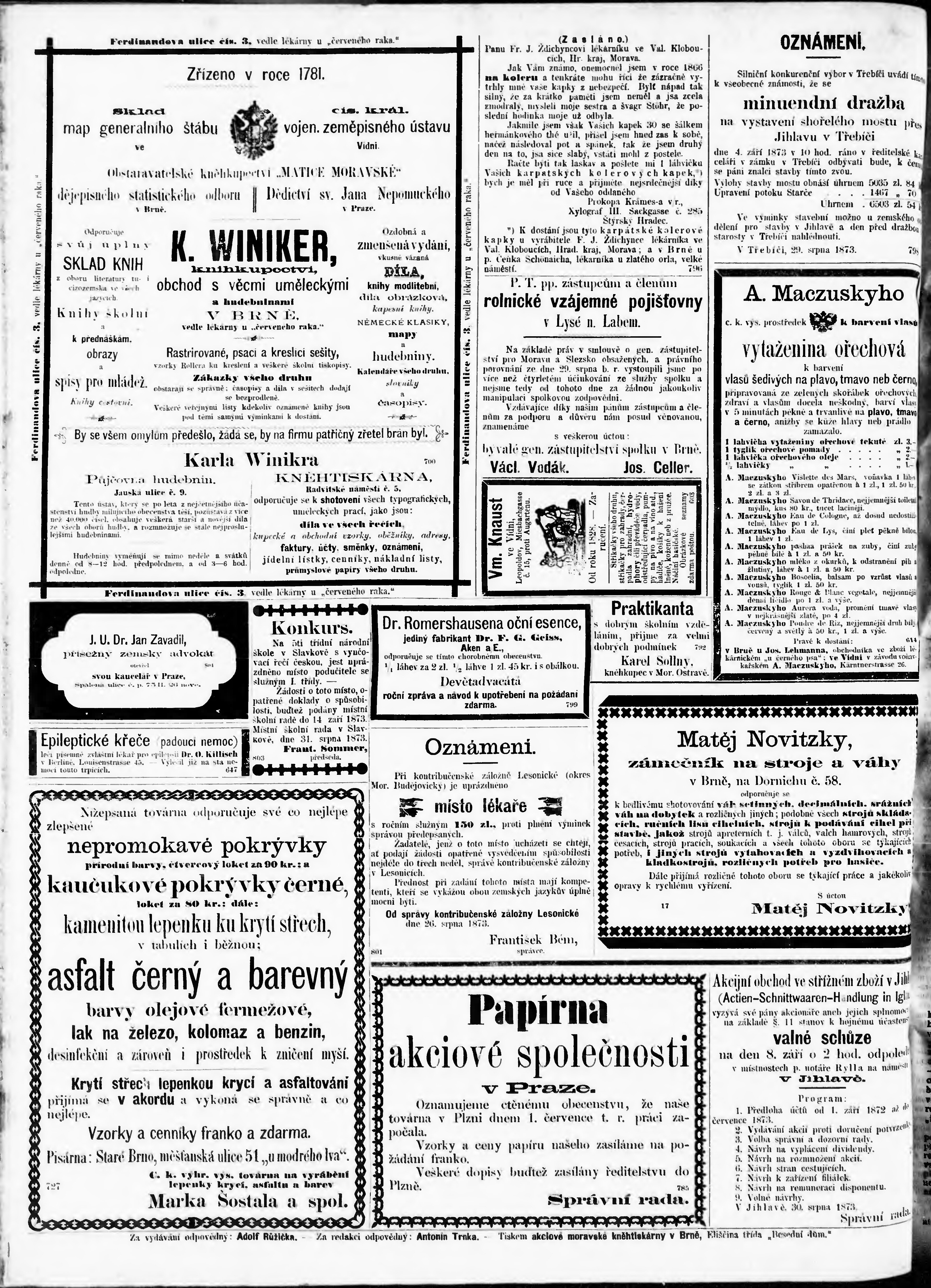 * Datum vydání výtisku: 3.9.1873 Číslo výtisku: 202