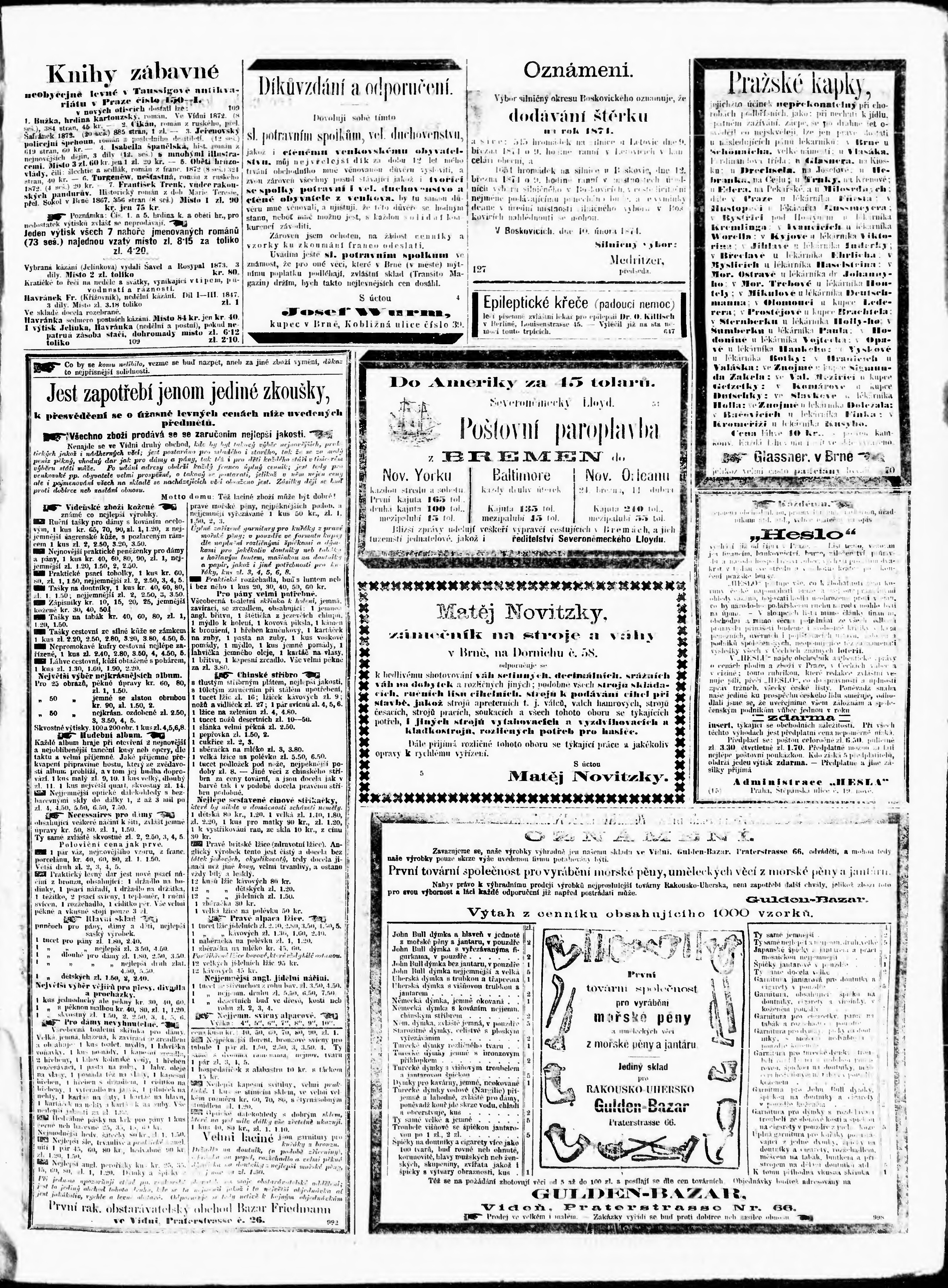 * Datum vydání výtisku: 15.2.1874 Číslo výtisku: 37