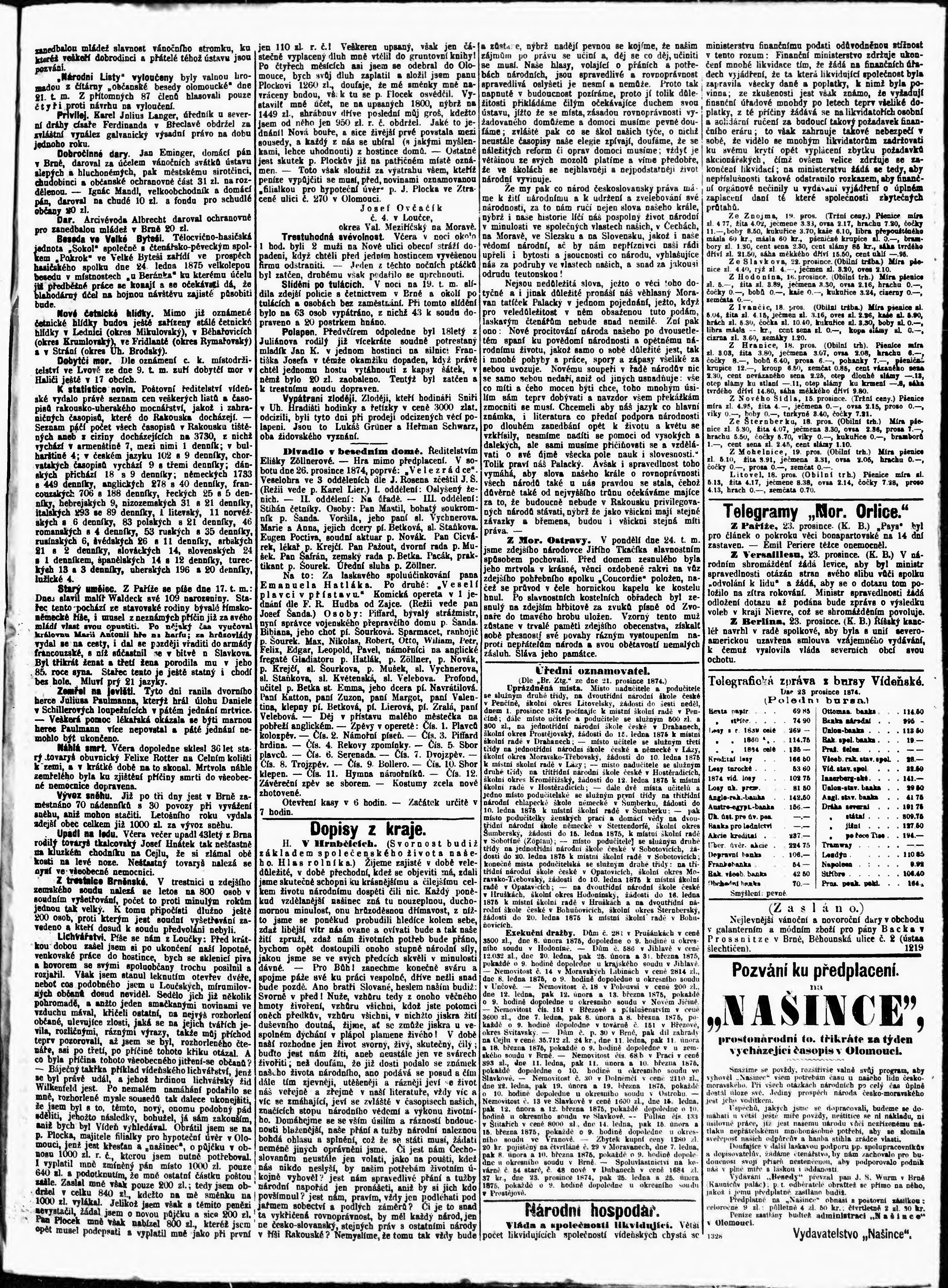 * Datum vydání výtisku: 24.12.1874 Číslo výtisku: 295