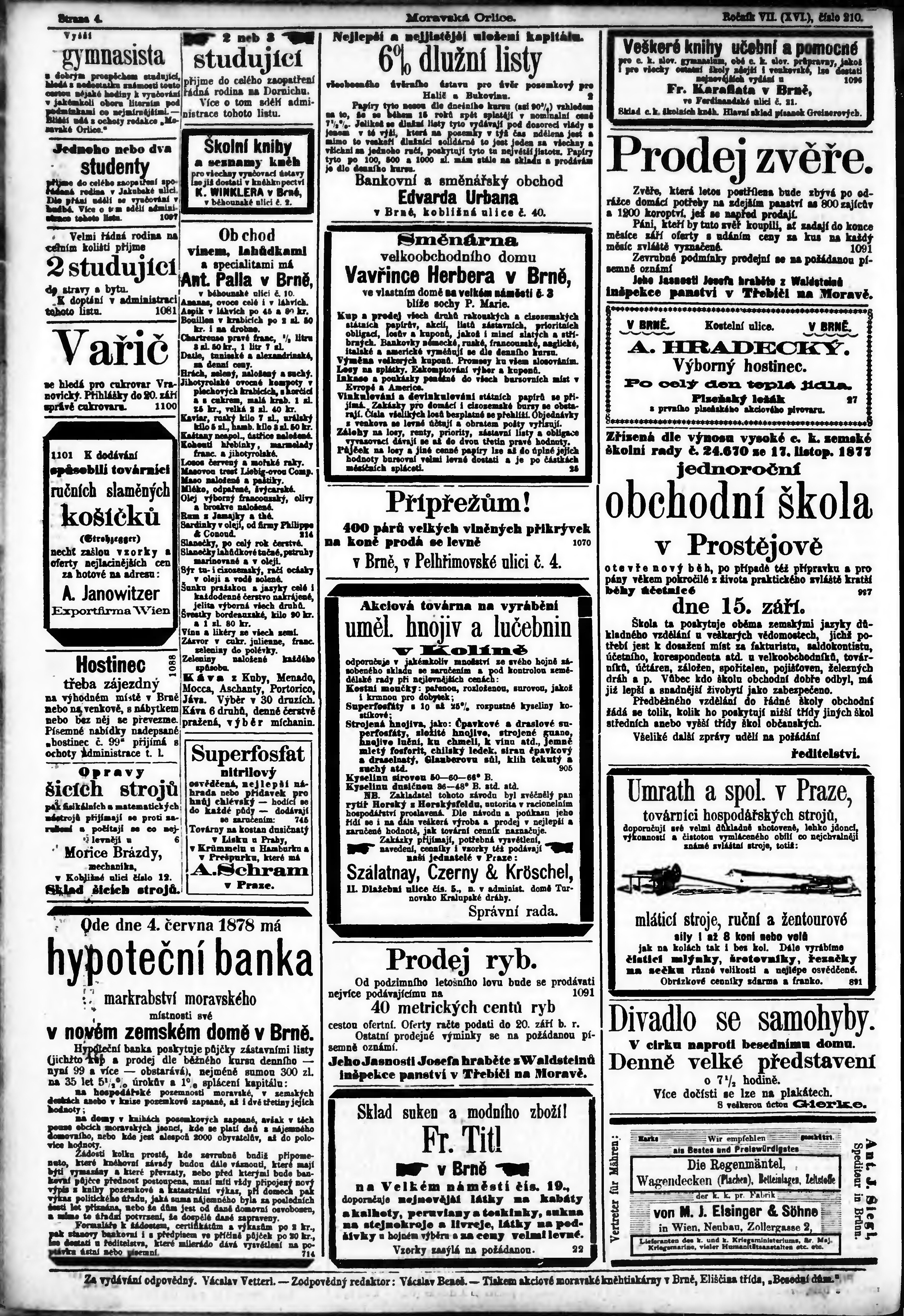 * Datum vydání výtisku: 13.9.1878 Číslo výtisku: 210