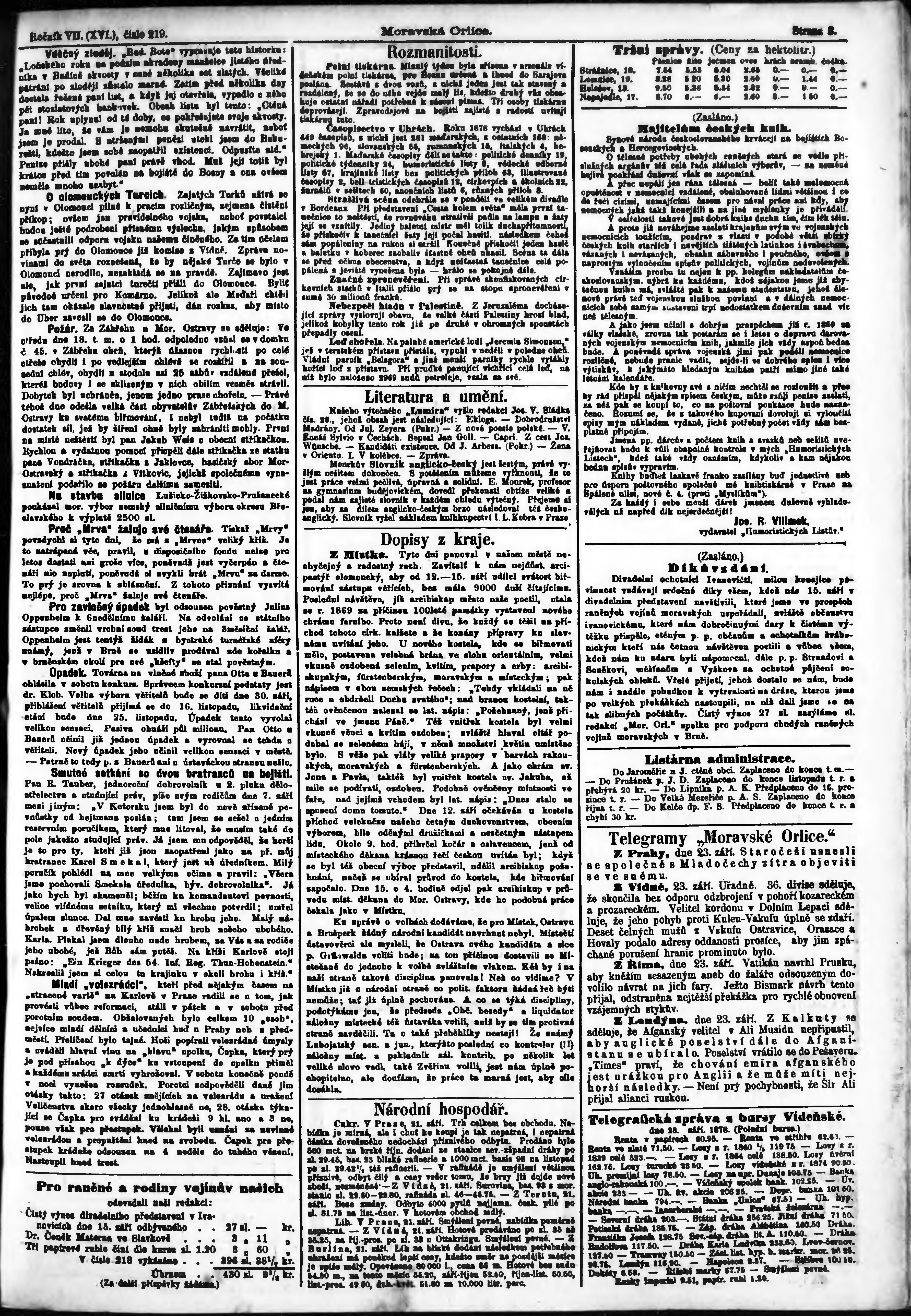 * Datum vydání výtisku: 24.9.1878 Číslo výtisku: 219