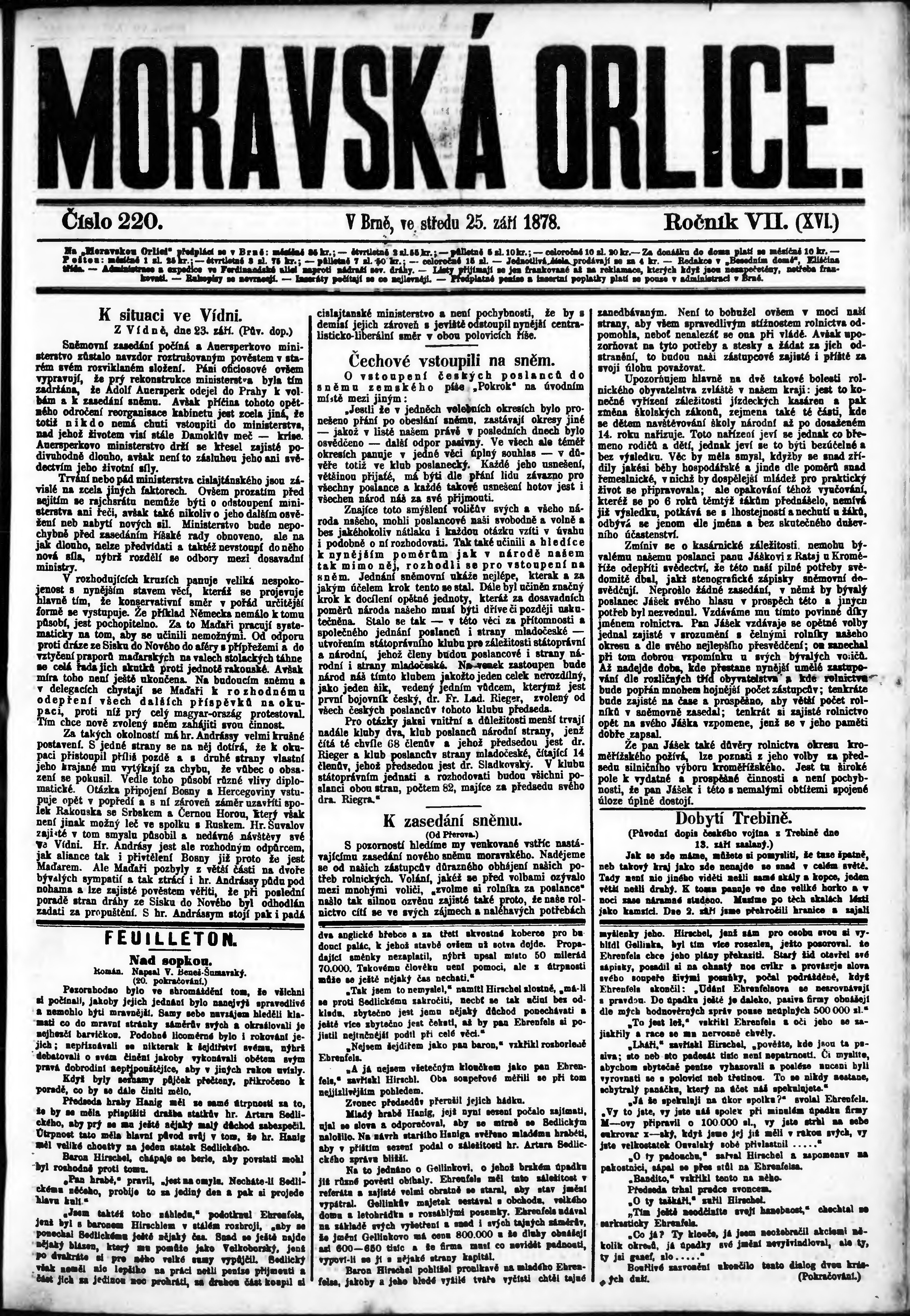 * Datum vydání výtisku: 25.9.1878 Číslo výtisku: 220
