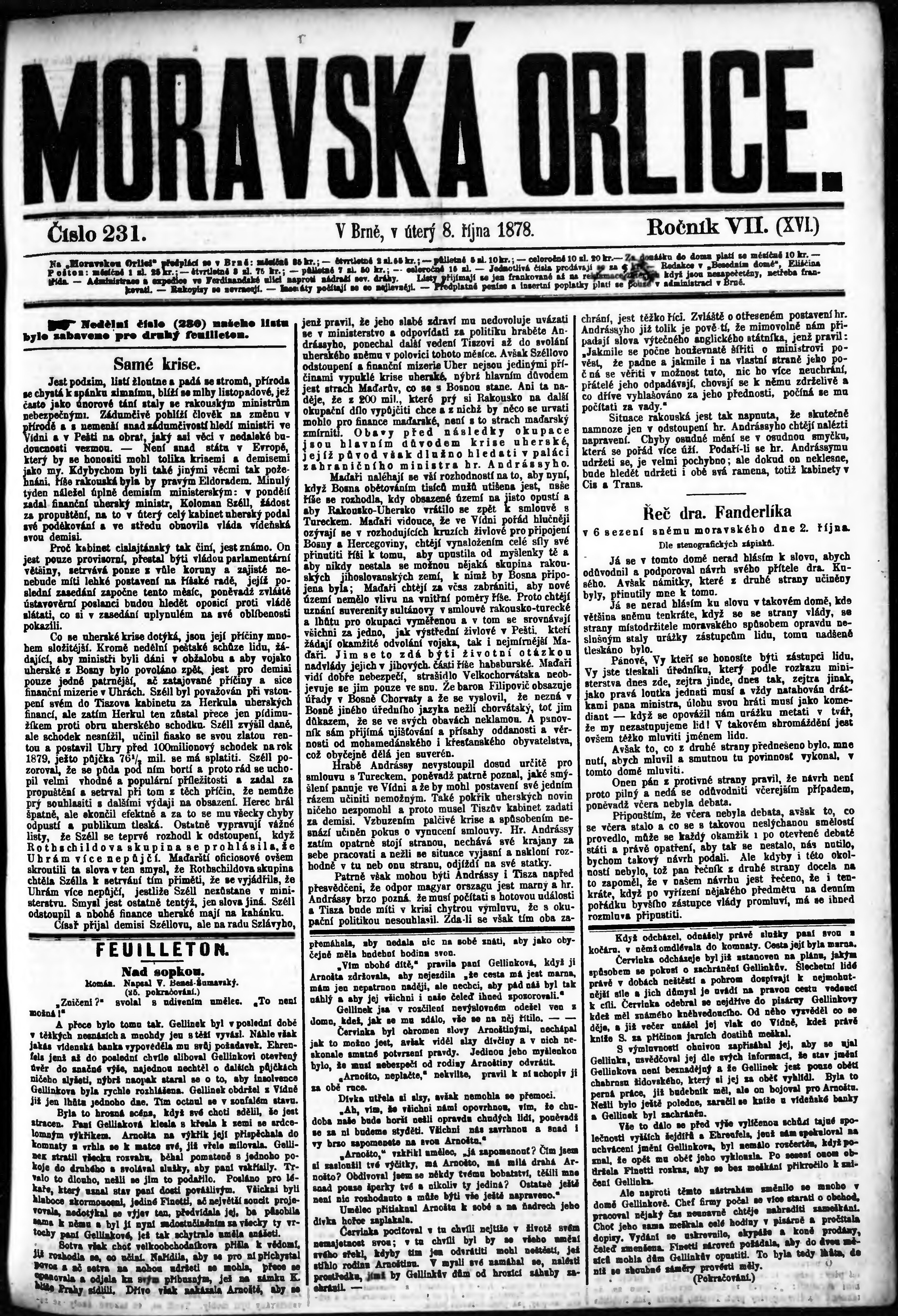 * Datum vydání výtisku: 8.10.1878 Číslo výtisku: 231