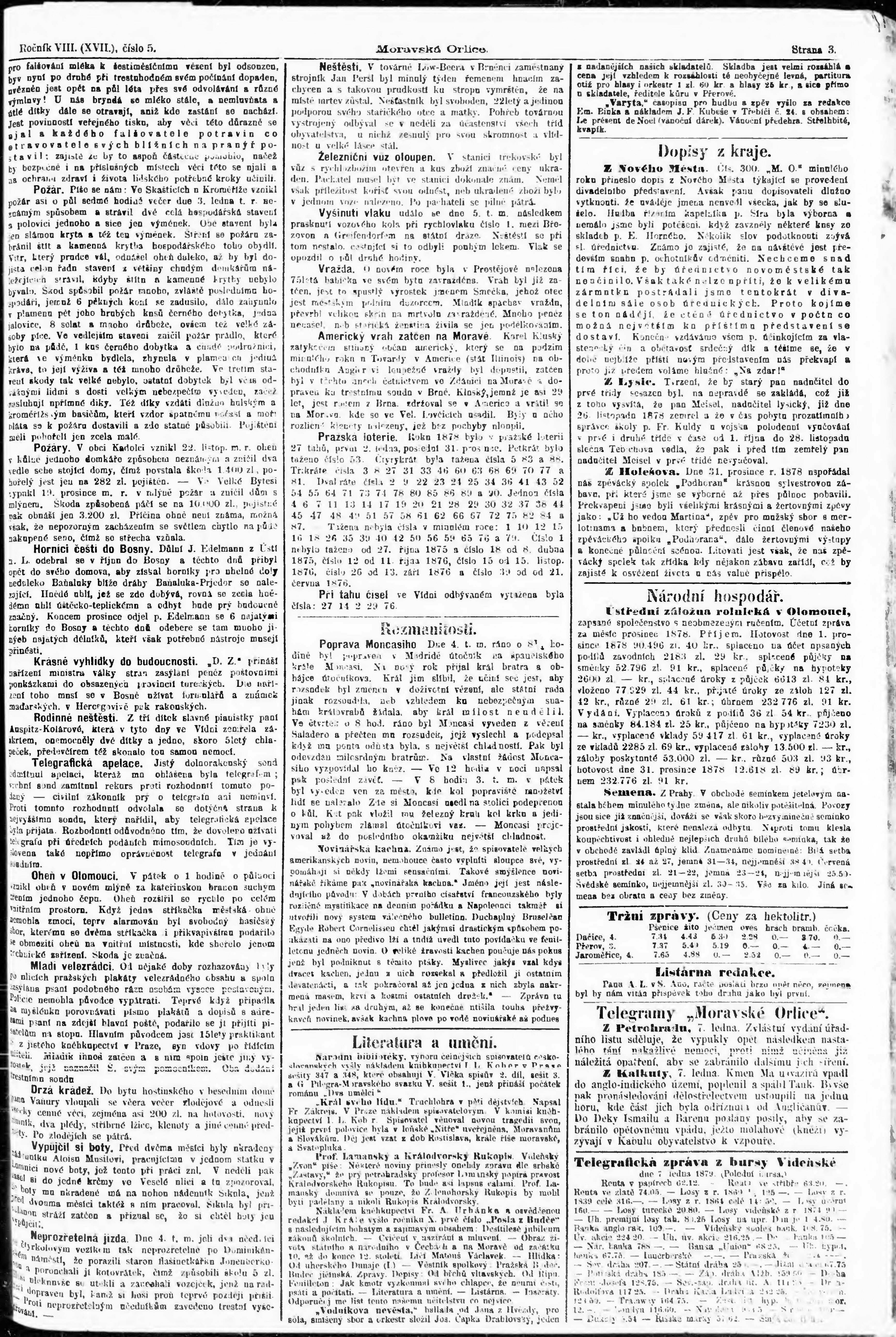 * Datum vydání výtisku: 8.1.1879 Číslo výtisku: 5